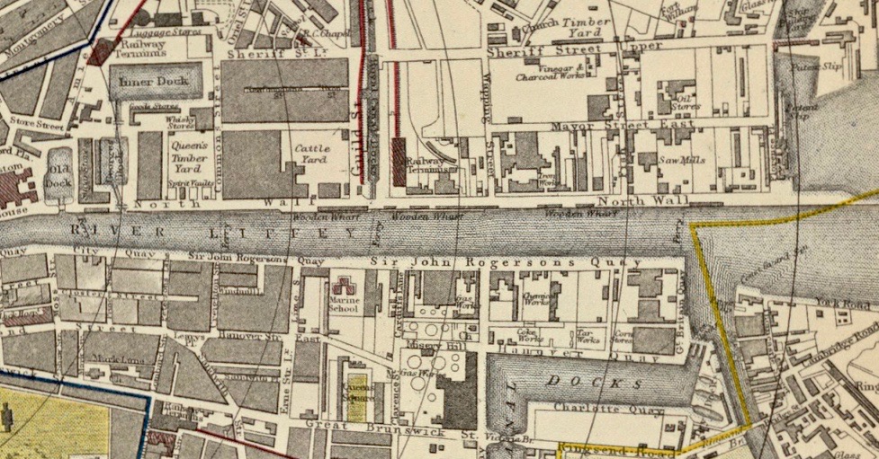 Grand Canal Dock, Dublin – photographs which we took in 2014 (above). The decline which was apparent then continues to this day. Currently there is a plan to sell much of the land for redevelopment. It goes without saying that navigable water will need to be retained to allow access from the Grand Canal itself to the Liffey. Below – another context for the Port of Dublin in the 1950s!