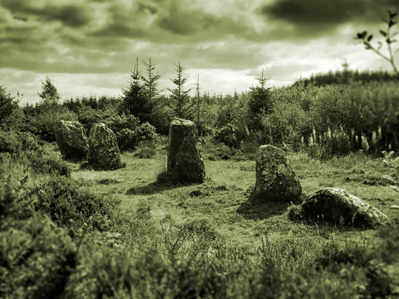 “It’s too long to tell”, said the girl. “There were only the two of us, sisters – and the best times were when we were living with our father and mother: strong, rich and important. Our mother fell ill and knew that there was no cure. She called us to her bed and told us that she saw a disaster on the horizon. The old powers would come and put an enchantment on us, and take our castle. Our father asked how long we would stay enchanted, and if there was any cure. There was none, she said, unless the Sons of the Salmon would ever find us. The old powers came to take the castle from us. When we resisted the old woman struck us with a magic wand and we were turned into three stones – my father, my sister and I. Only I was released every day to carry out the chores. That is how we have lived our lives up to now, and if the old woman is dead then perhaps the magic is at an end.”