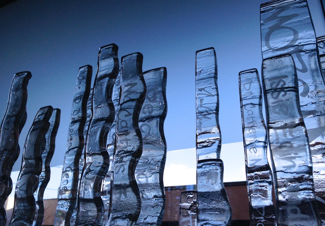 A specially commissioned glass sculpture by Michael Ray graces the entrance hall, and incorporates the signatures of sponsors of the building