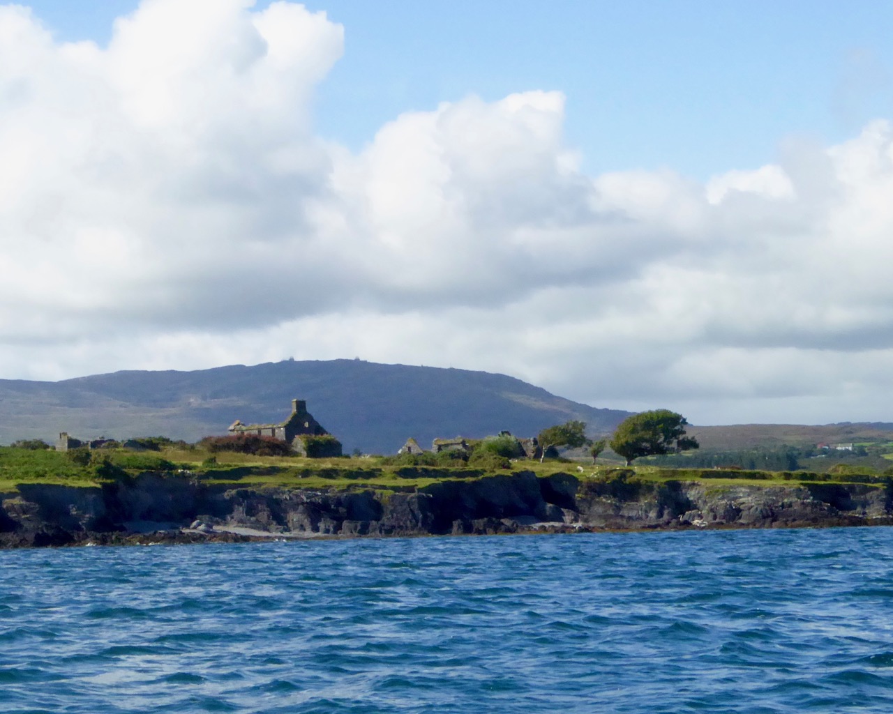 Dermot Runtach’s sons were the castle builders. Conor Cabaicc succeeded his father in 1427 and remained Taoiseach for 46 years, embarking on an ambitious program of construction to provide castles for his sons and brothers, beginning with Ardintenant. He died in 1473, by which time probably all of the castles of Ivaha were built and occupied by various members of his derbfine (extended family). Cabaicc means of the exactions (or forced tributes), although it is possible that Conor was more benignly known as Cabach – meaning talkative. His brother, Fineen, the Táiniste (heir-in-waiting) built Rossbrin Castle, about which Robert has written, and which is the castle in our view at Nead an Iolair. Rossbrin and the remains of a small tower on Castle Island are both visible from Ardintenant.