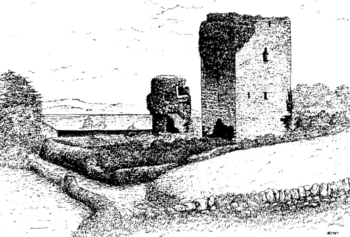 In his marvellous paper on Ardintenant Castle in Mizen Journal 11, 2003, John Hawkes investigates the history and construction of the castle and provides elevation and plan drawings. I am grateful for his scholarship and thoroughness, which has informed the following description of what is left at this site, as well as provided illustrations.