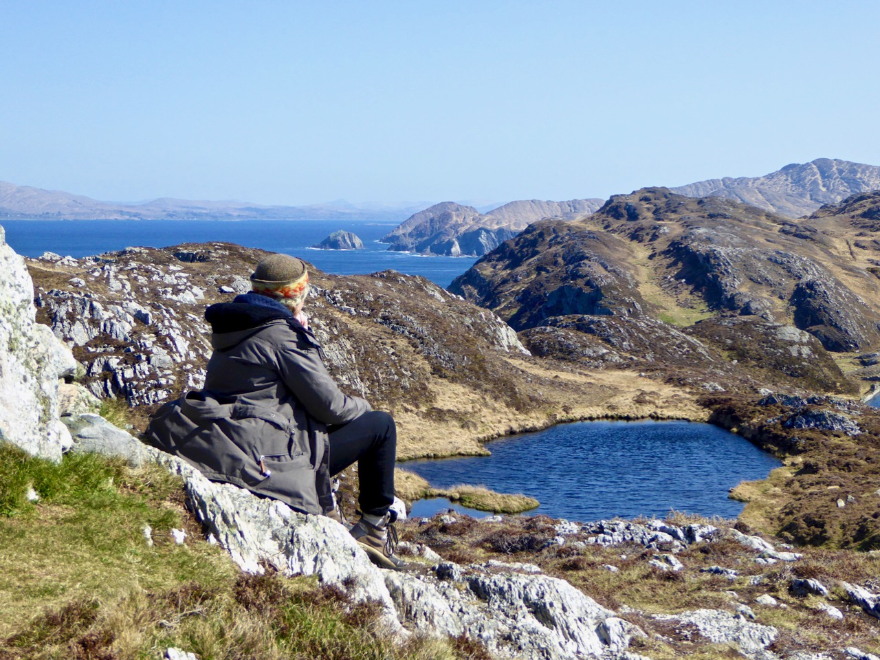 This beautifully atmospheric view of Rossbrin castle also includes another castle across the water in the distance: that’s the one that gives Castle Island its name. One of the highlights of the year for me was a visit to that island, courtesy of another neighbour: thank you, Dietrich, for giving us a ride out there on your handsome classic fishing boat ‘Barracuda’ (and for bringing us back)! We look out to the island from Nead an Iolair, and it has always had a sense of mystery for us: it has a number of dwellings on it, all now deserted and in ruins (have a look at the picture below). My post Castle Island Explored – Part 1 tells of our exploration but also sets out a little of the history of the place. Since our visit I have discovered more about the island and its story, and I really will get on with the long overdue second instalment in 2021 – that’s a promise!