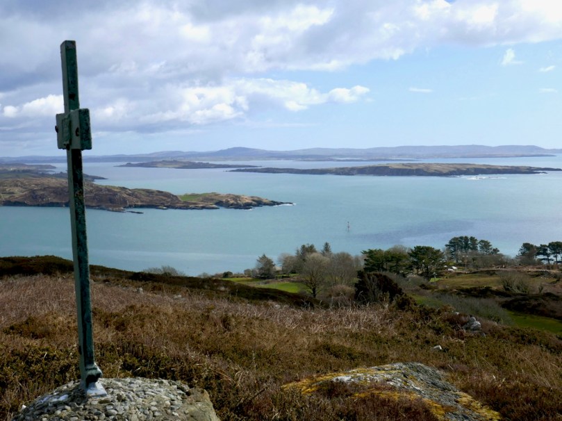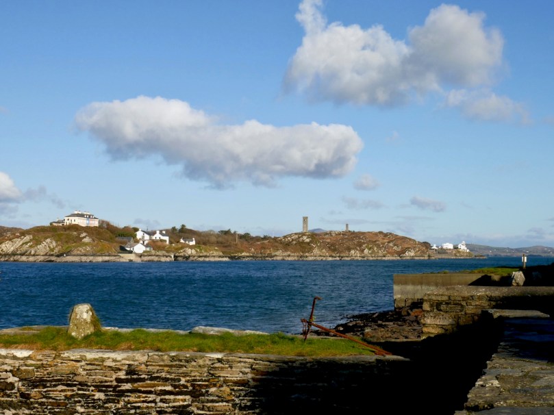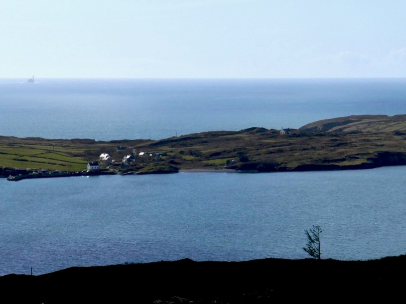 This photograph was taken from Brow Head and shows Rock Island’s location in relation to Crookhaven (foreground) and the rest of the Mizen. The furthest peak is Mount Gabriel