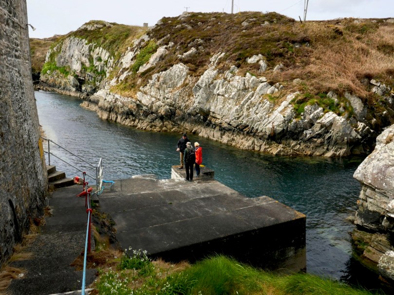 Upper: the remains of the quay by the lobster ponds. Lower: Aidan, Amanda, Peter and Robert on our Rock Island tour