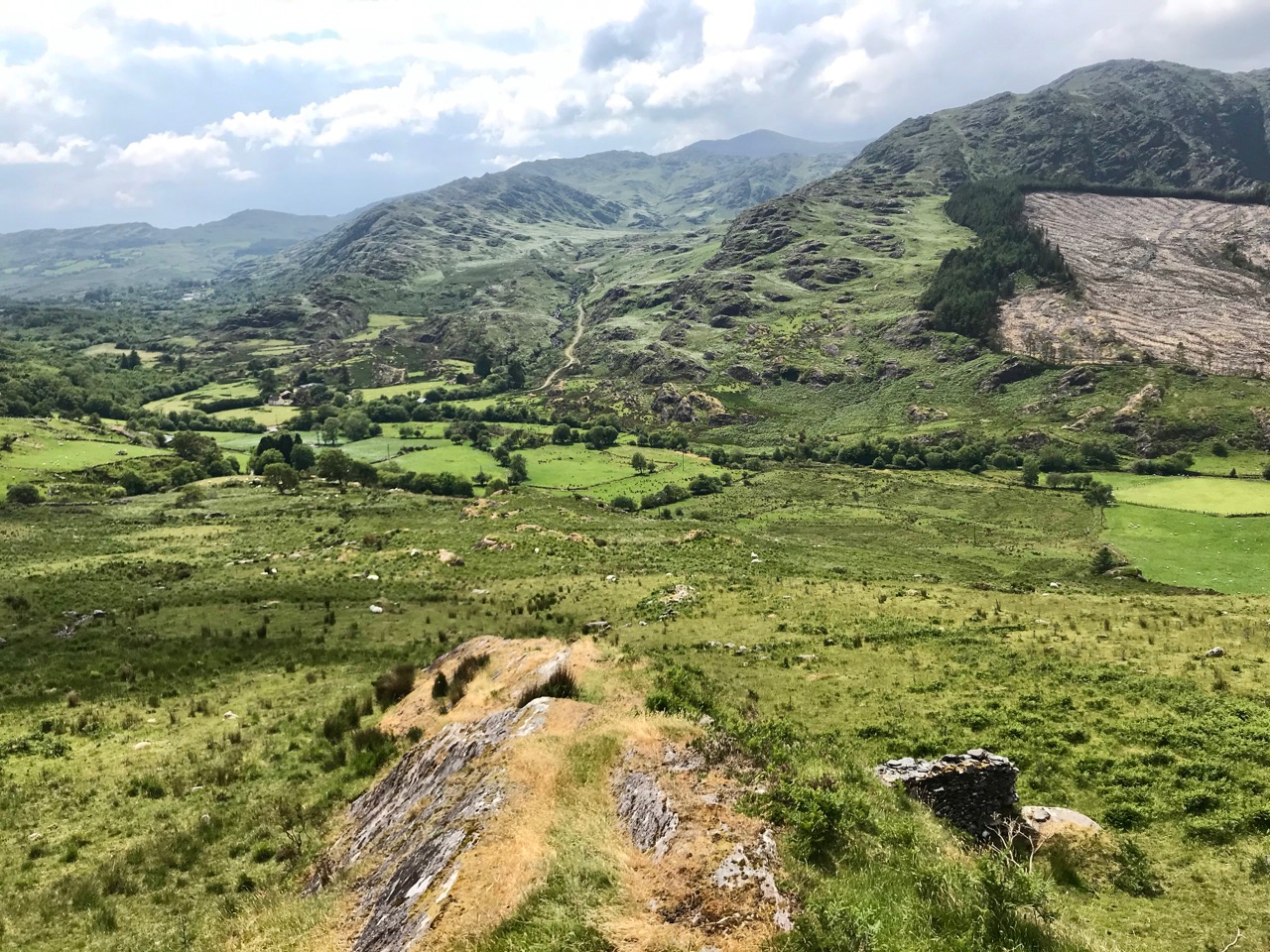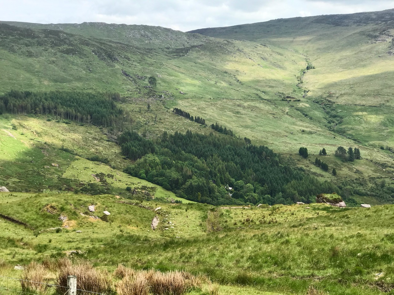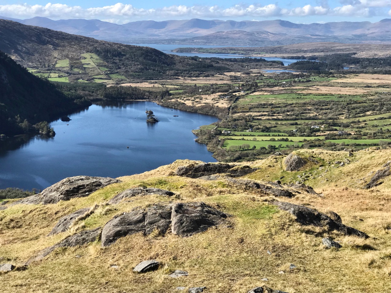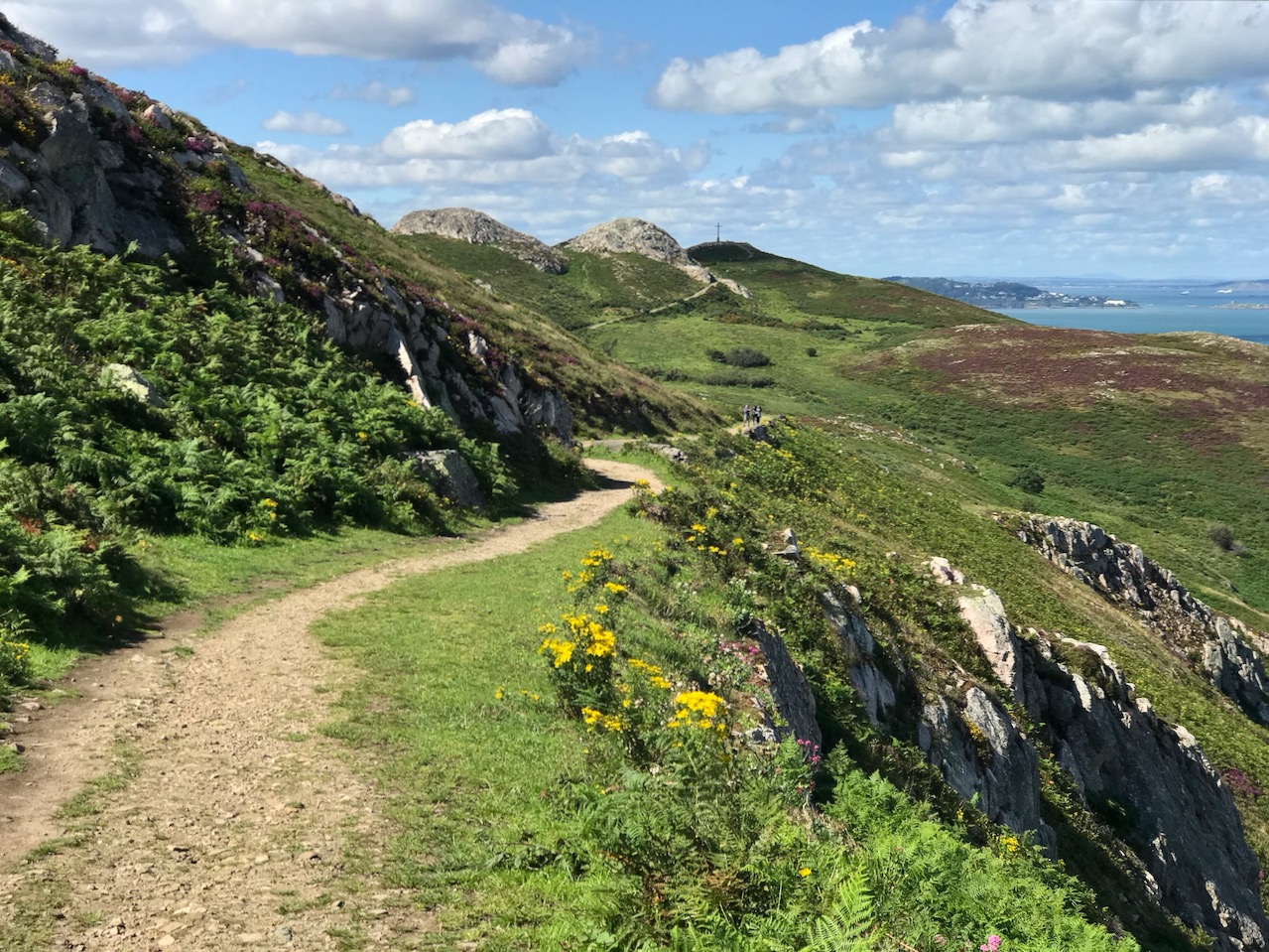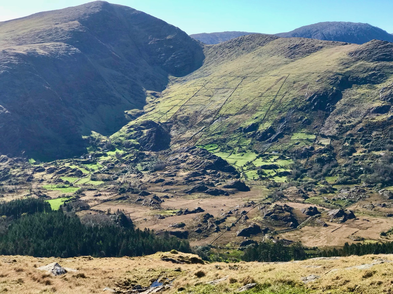 We were unexpectedly in County Wicklow, and had a day or two of sunshine. To take advantage of this, we found our way up to the Great Sugar Loaf, with every good intention of climbing to its peak – 501 metres above sea level. I’ll come clean and mention that the starting point for the walk is already halfway up this elevation – and also we didn’t make it all the way on this occasion, as we were heavily overdressed! Only yesterday we still seemed to be in the grip of a very harsh winter, so had assumed that gloves, scarves and thick jackets would be the order of the day. In fact, quite a few other climbers were clad in tee shirts and shorts…