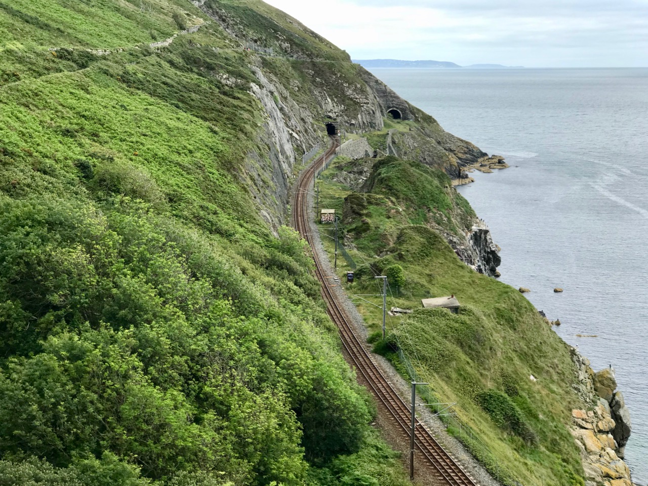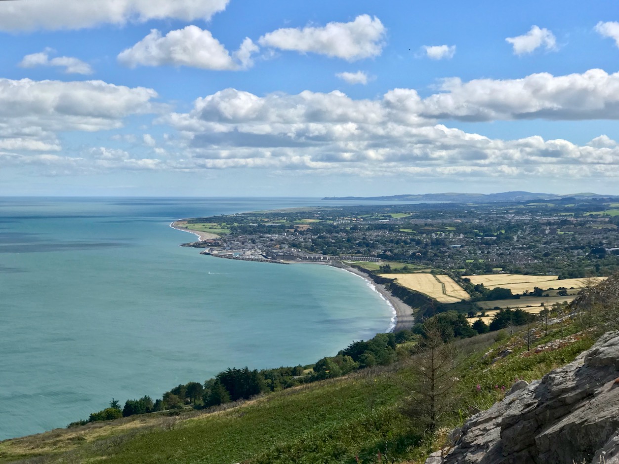 This photo, which dates from the early 1900s, is taken from the old beach in Greystones: the Little Sugar Loaf is over to the left, while the ‘Great’ one is at the left end of the further ridge (photo by William Alfred Green (1870–1958) – courtesy of Ulster Folk Museum). Below – the same view of the two ‘sugar loaves’ taken from the Marina, Greystones, today.