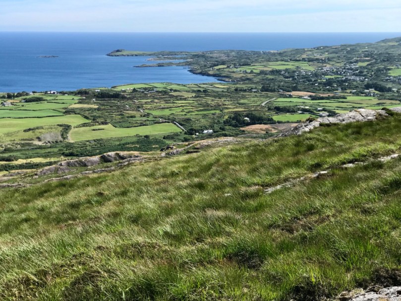 After lockdown restrictions were eased, we made a little trip up to County Wicklow to see family and friends, and took full advantage of the many trails that cross the granite outcrops between Bray and Greystones. The header picture looks south-west from Bray Head towards the Great Sugar Loaf, part of the Wicklow mountain range which, at 501 metres, is significantly higher than our own Mount Gabriel in West Cork at 404m, but which nevertheless provides this view (above) towards the coast of Roaringwater Bay, and looks out over Carbery’s 100 Isles.