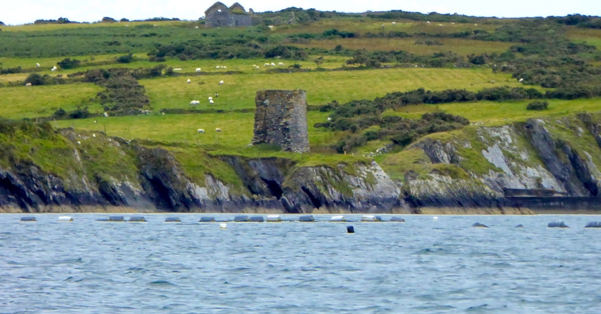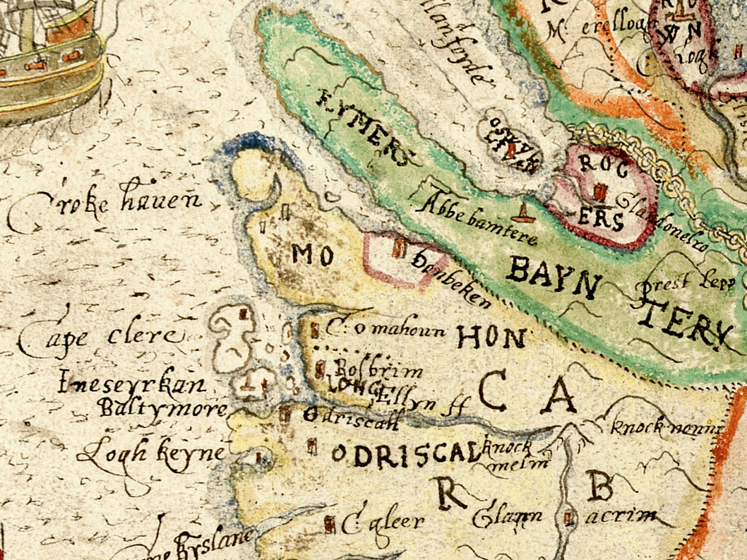 Sarah Kerr positions Dún an Óir in a network of O’Driscoll castles that together worked to control the resources of Roaringwater Bay, to levy fishery dues, monitor trade, and defend territory when necessary. Within this network, the highest status tower, and probably centre of administration was Dún na Séad (Baltimore). The highly visible nature of all these castles, some on promontories and all visible from the sea, were ‘manifestations of authority, wealth and status.’ She posits that: