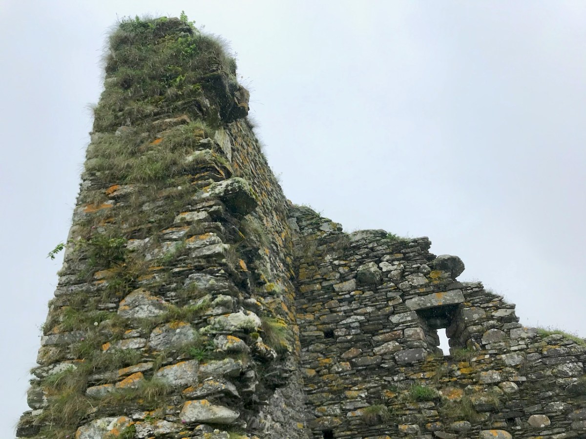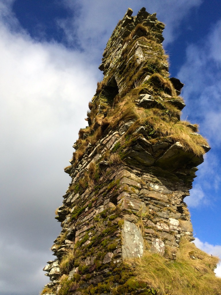 The battlements have disappeared – they were likely Irish crenellations consisting of stepped merlins and crenels (see here) – but the wall walk can still be discerned. As you can see below, the steps can still be climbed by those brave enough.