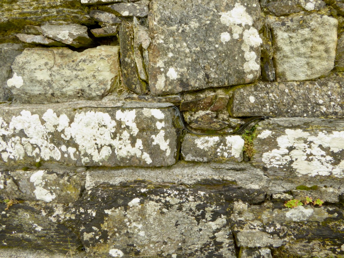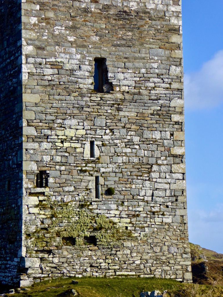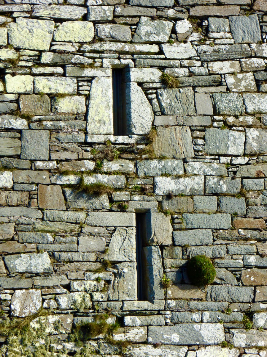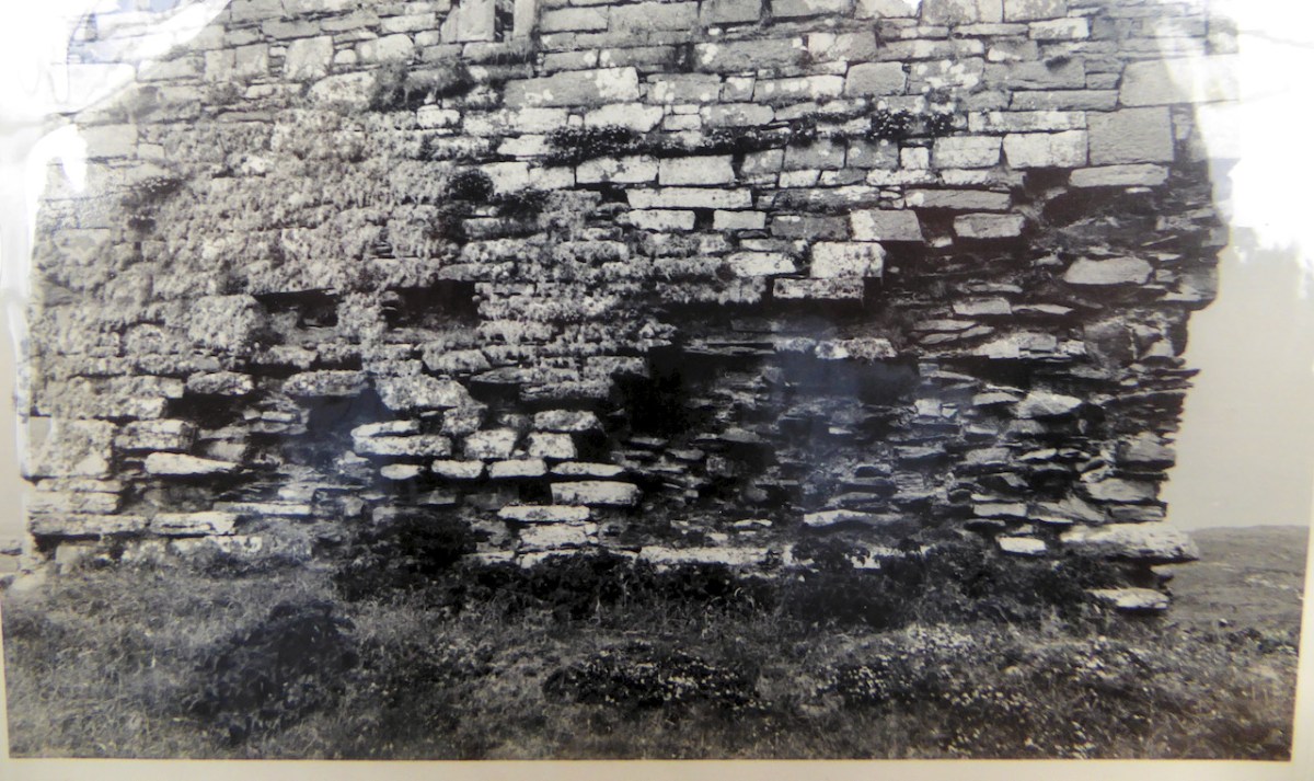 Flat slabs were used to dress the outside of the walls, the same construction method as at Dunlough, although not as finely built.