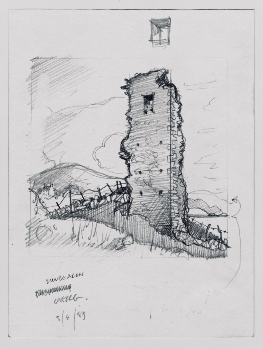The castle was surrounded by a bawn wall, clearly visible still. Three floors (ground, first and second) were surmounted by a ‘partial vault’, above which was the principle chamber or solar – the private domain of the castle owner and his family but also where visitors were entertained. Above that was a mezzanine floor and above that again was a wall walk, accessed via a spiral staircase from the main chamber.