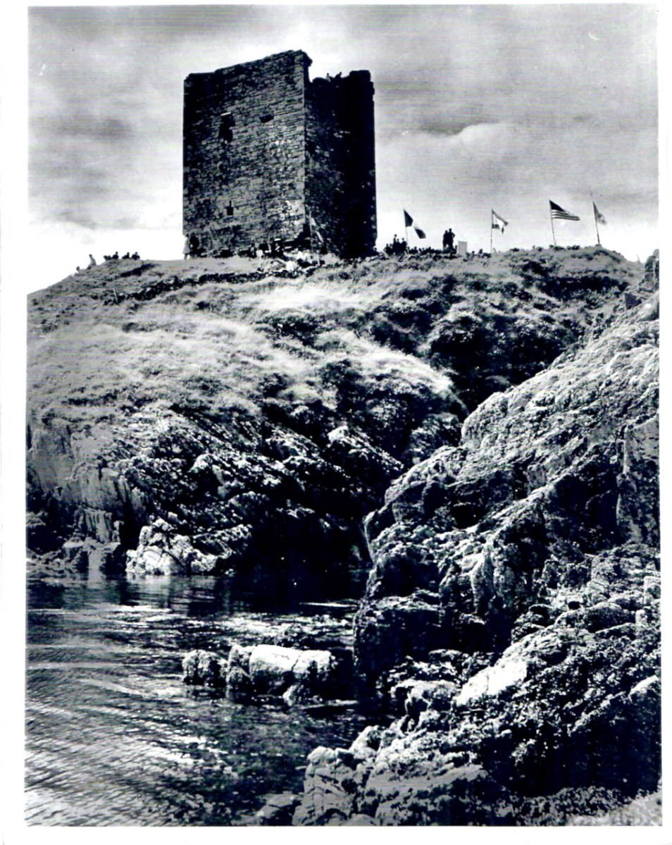 In her paper on this castle*, Sarah Kerr points out that it is, in fact, unlike the other O’Driscoll Castles of Dún na Séad and Dún na Long, and indeed other West Cork Castles, in that it only had one entry, at the ground-floor level. It is possible, she says, that the tower was so well defended naturally by its position, that a raised entry (an additional line of defence) was unnecessary. She also points out that a raised entry functioned as a status symbol, since it was the entry used by the chief to access the private rather than the public spaces within the tower. Perhaps Dún an Óir was therefore a lower-status castle, occupied by a garrison rather than by a chieftain. She provides this plan