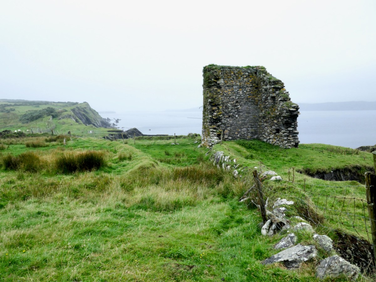 Quite a bit of the bawn wall survives, although of course it would have been much higher (possibly as described here). If the sheer cliffs were not enough to deter any thought of attack, the walls would have provided an additional barrier. Unfortunately, they were not able to withstand cannon fire, let alone the passage of hundreds of years. Sarah Kerr has an interesting take on this wall: