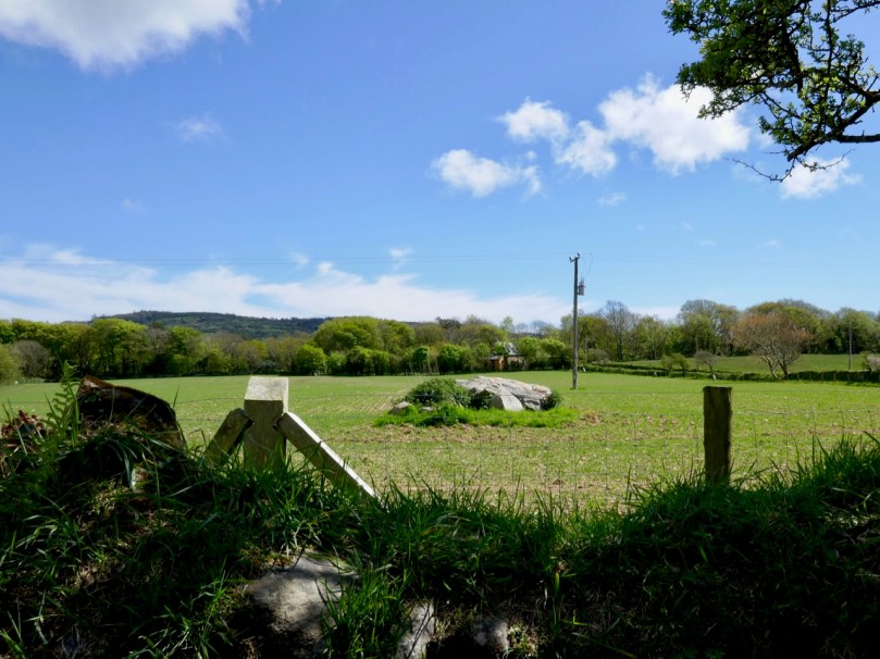 There are lovely views (above) across the Ilen to the ruined church at Aughadown – burial place of the Tonsons that I wrote about in New Court Bridge – a Hidden Wonder. Surprisingly, beyond the church, you can see Mount Gabriel. I mention this because of its significance with our next find – a previously unrecorded cupmarked stone!