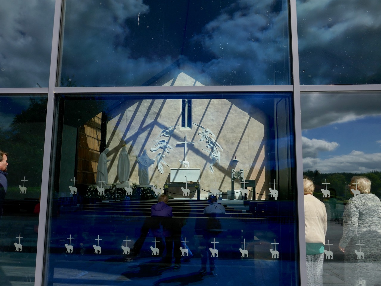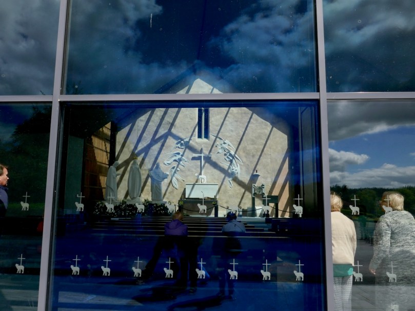 Our travels have taken us to quite a few Christian pilgrimage sites in Ireland: they are all fascinating, and range from St Patrick’s holy mountain – Croagh Patrick (where snakes were cast out of this country forever) – through the rather daunting Station Island on Lough Derg (where a medieval pilgrim entered, and returned from, Purgatory) to the more ‘unofficial’ shrine at Ballinspittle, here in West Cork, where a statue of the Virgin was seen to move (by hundreds of onlookers) in 1985. Recently we found ourselves in Mayo, so a trip to Ireland’s most impressive shrine – at Knock – was essential.