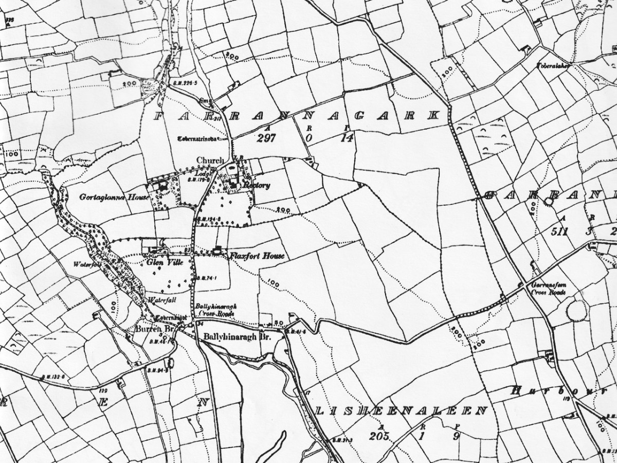 However, today there is an addition to the map in the form of a new ‘cemetery’ just to the north of the church. On the Ordnance Survey and the Archaeological maps of Ireland the term ‘Graveyard is defined thus: The burial area around a church. These date from the medieval period (5th-16th centuries) onwards. However, the terms ‘Burial Ground’ and ‘Cemetery” are reserved for An area of ground, set apart for the burial of the dead, not associated with a church. In this case the word cemetery is used to denote a modern burial area which was not originally associated with the church.
