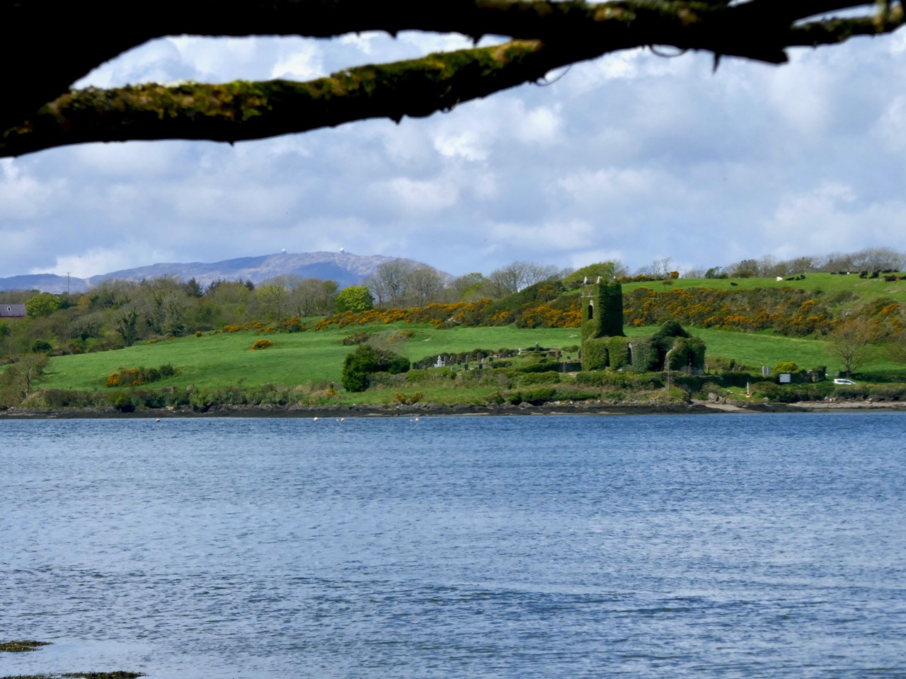 There are lovely views (above) across the Ilen to the ruined church at Aughadown – burial place of the Tonsons that I wrote about in New Court Bridge – a Hidden Wonder. Surprisingly, beyond the church, you can see Mount Gabriel. I mention this because of its significance with our next find – a previously unrecorded cupmarked stone!