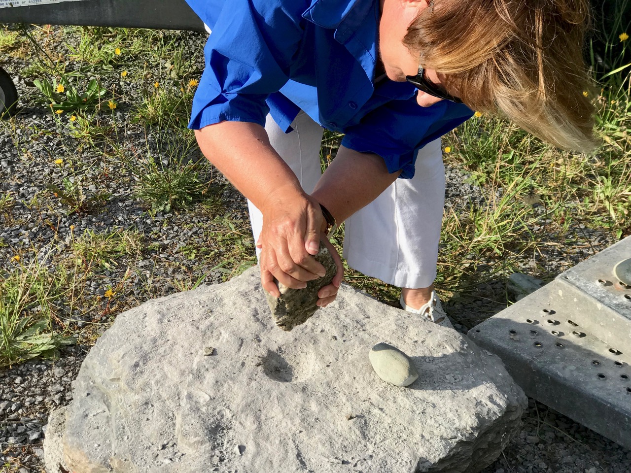 Once through the ‘skin’ things went a little faster and the hammering action raised lots of dust. In some ethnographic studies of cultures that carve cupmarks it appeared that the dust was one of the desired outcomes and played a part in whatever rituals were involved