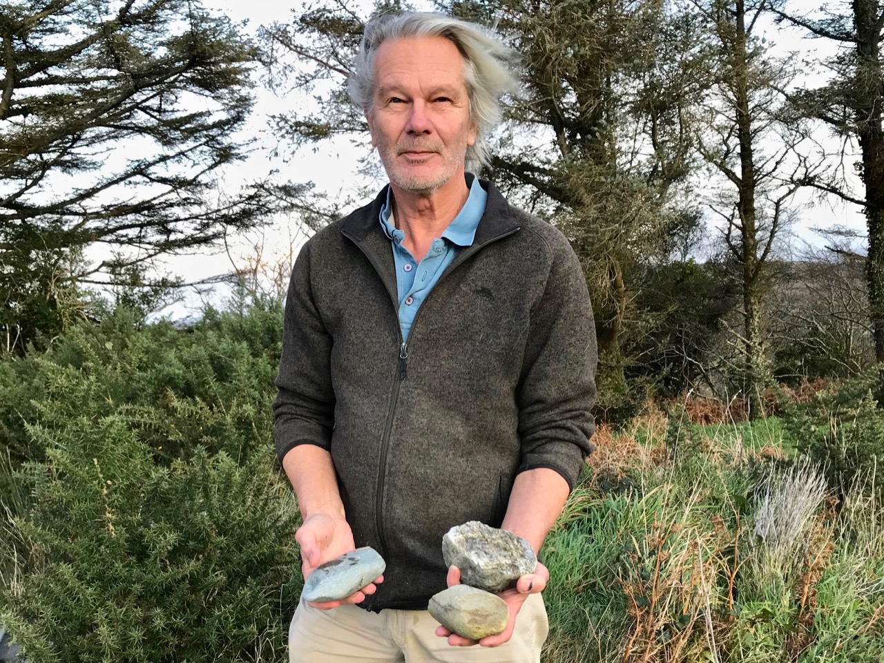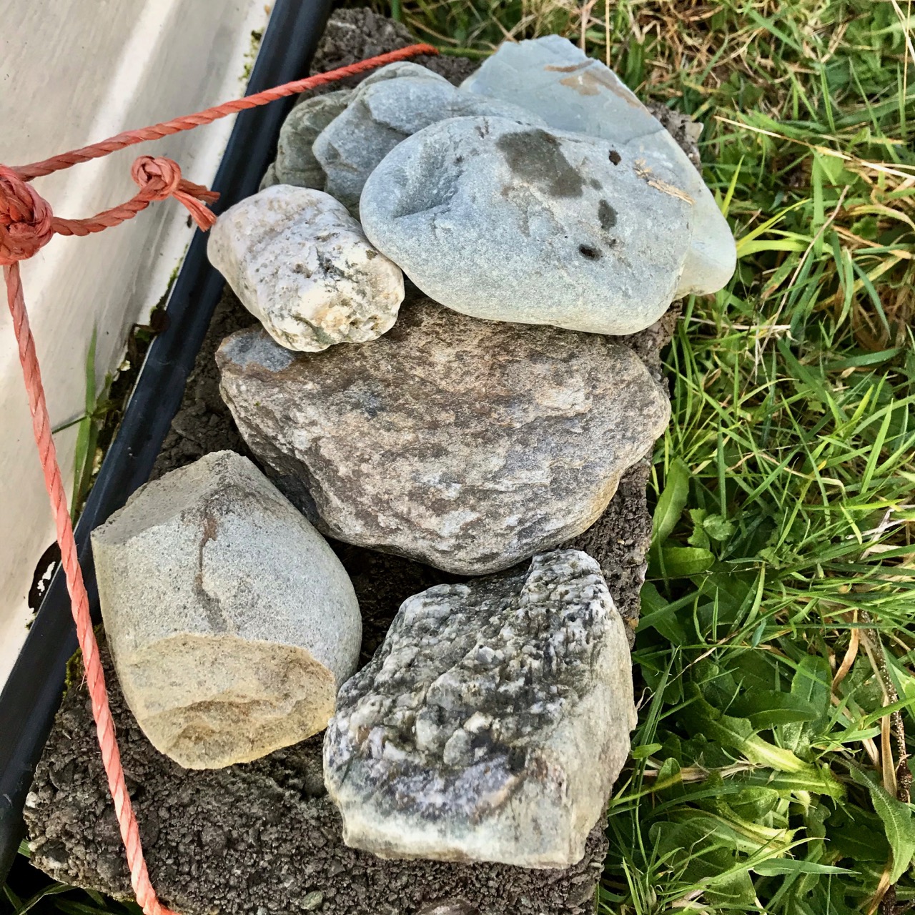 Before he started – Oliver chose a piece of local sandstone and a variety of water-rolled cobbles as picks