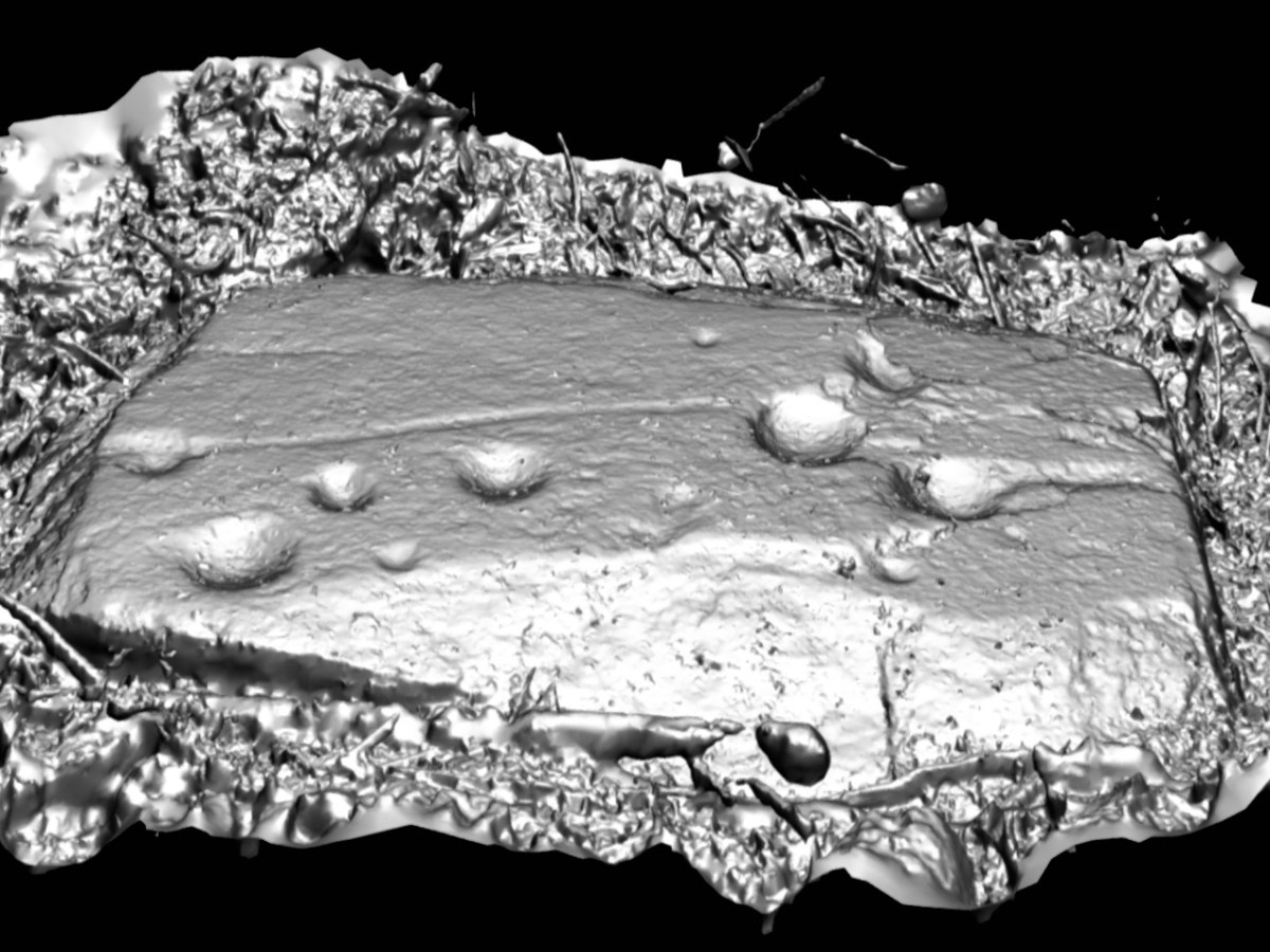 It was hard to get the rock clean enough to see detail so I decided to carry out a photogrammetric survey, the object of which is to end up with a 3D image from 2D photographs. That involves taking LOTS of photos (in this case, 100) of the stone, working my way systematically across the surface of the stone at three different levels, keeping the camera settings consistent.