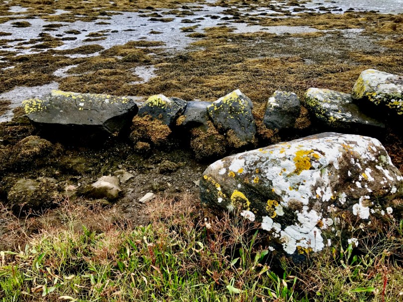 We have been seeing some exceptionally high and low tides here in Rossbrin. I’m always fascinated to see the mud-flats revealing bits of discarded history, while I am convinced that the huge remnants of dressed stonework on the north-east shore are the vestiges of once-busy quays, dating either from the medieval period, when Sir William Hull and the Great Earl of Cork owned the lands around here and set up thriving fish-processing ‘palaces’, or – at the latest – when the copper mines were active up on our hills and on Horse Island in the nineteenth century.