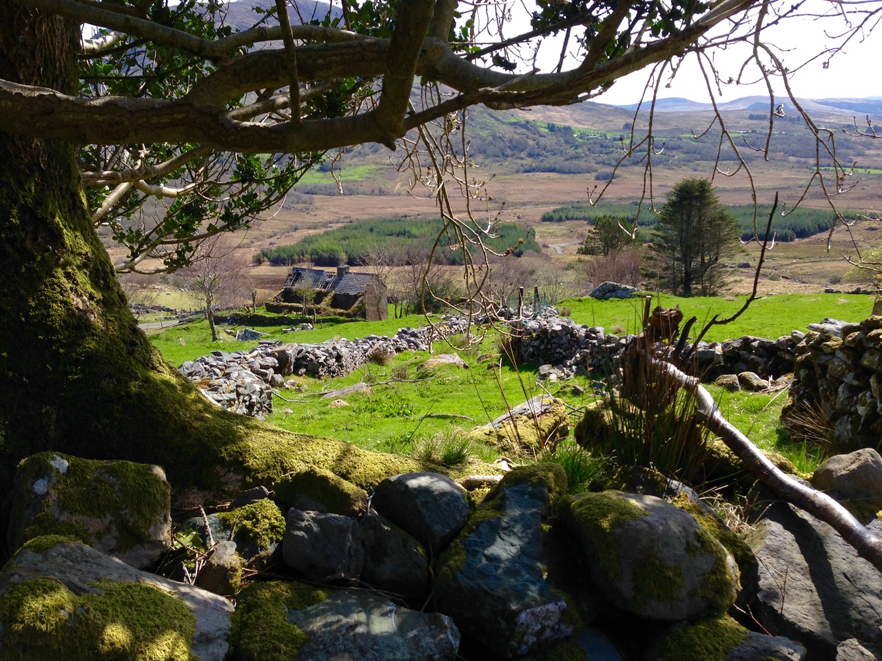 I spent time recording all the known Derrynablaha rock art when I was doing my thesis in archaeology at UCC in 1972. The carvings had been discovered by the landowner, Daniel O’Sullivan, who wrote to the Department of Archaeology in 1962. His brother, John, still lived on the farm when I was doing my fieldwork, in the farmhouse that is now a ruin (above) but which still holds happy memories for me. The remains of a more ancient settlement are also clearly visible (below).