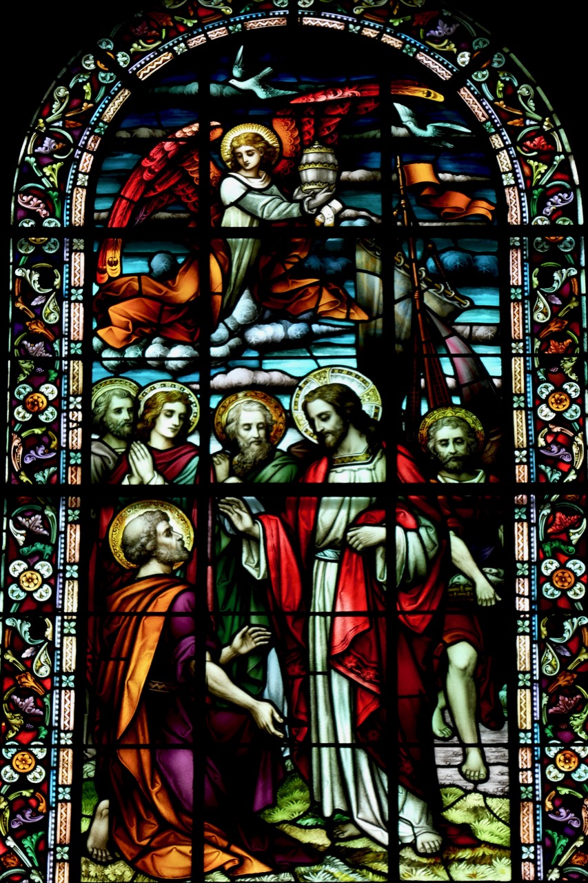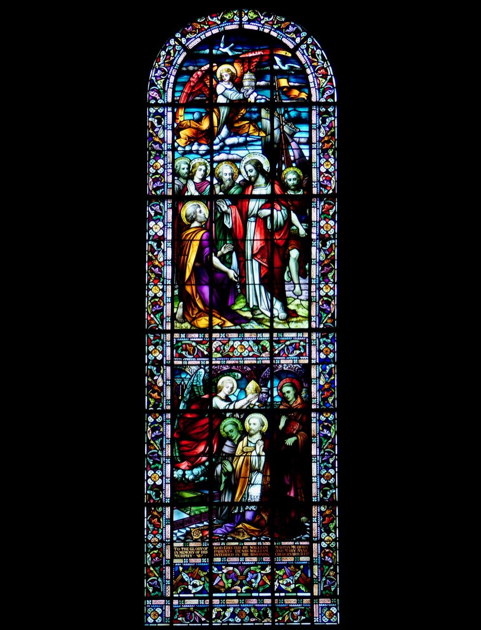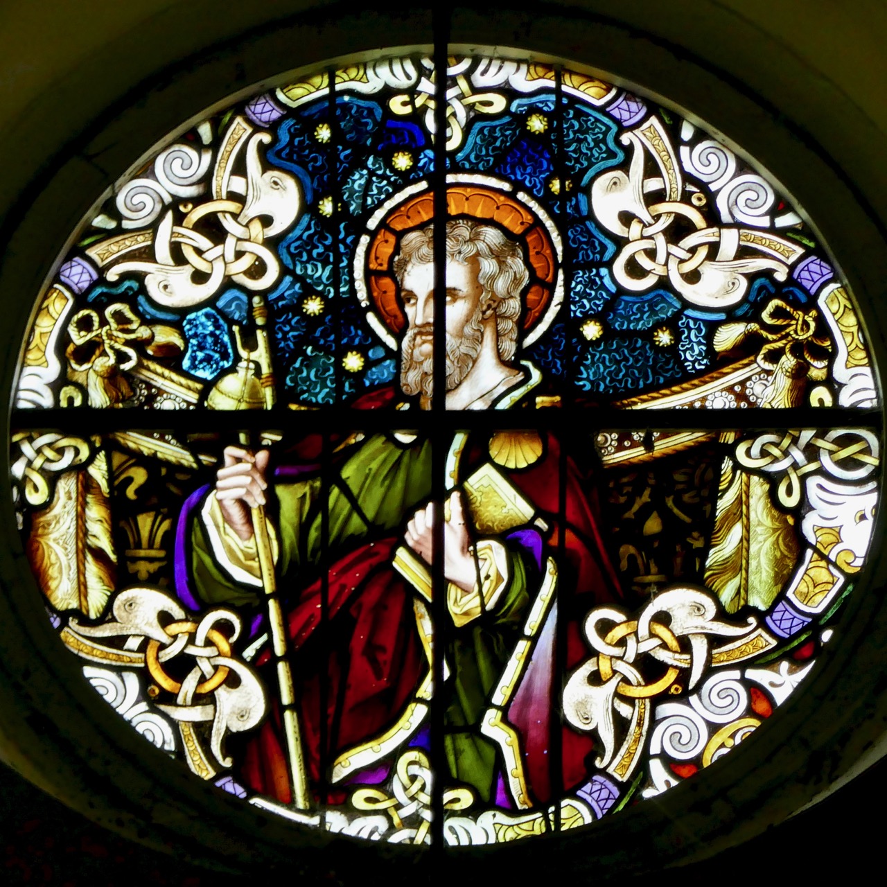 The Patrick and Brigid window in Meath Hill, by George Walsh. I love that Brigid has precedence over Patrick in this enormous cruciform window