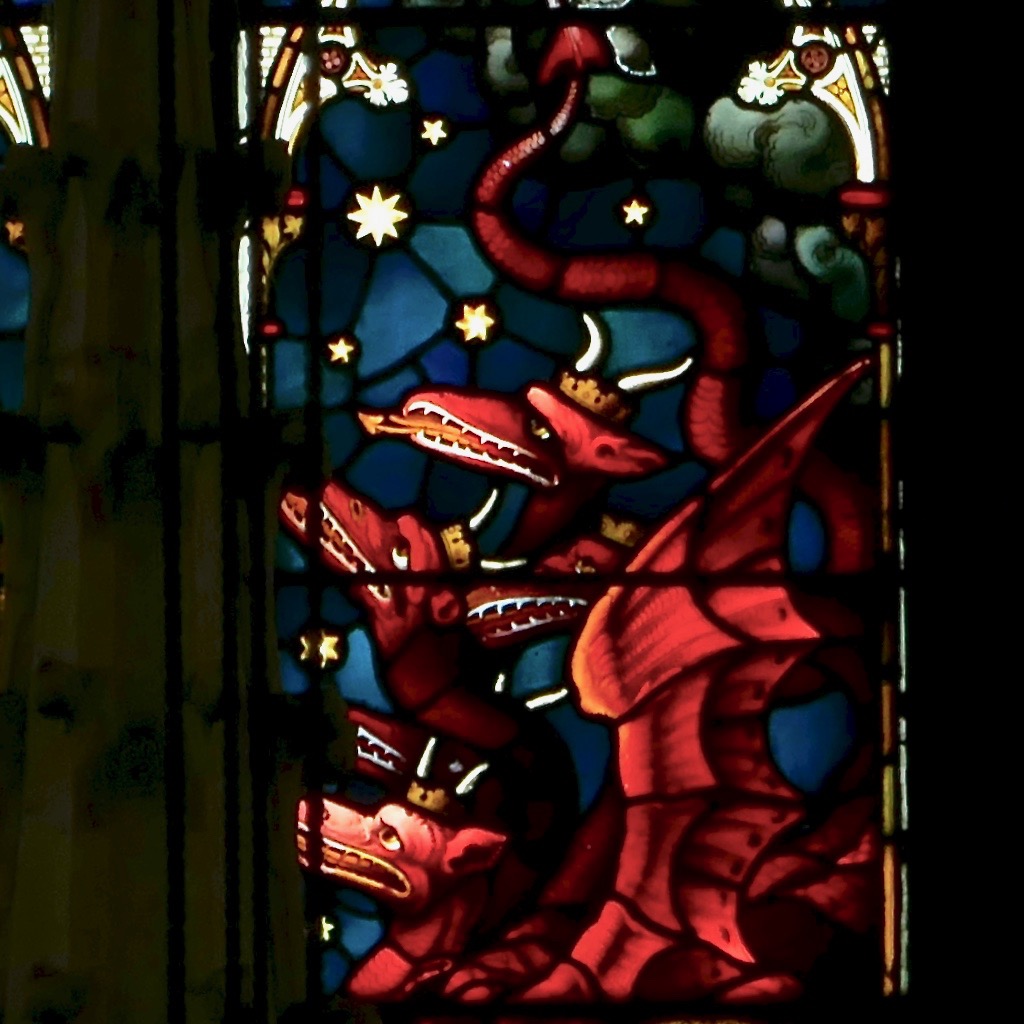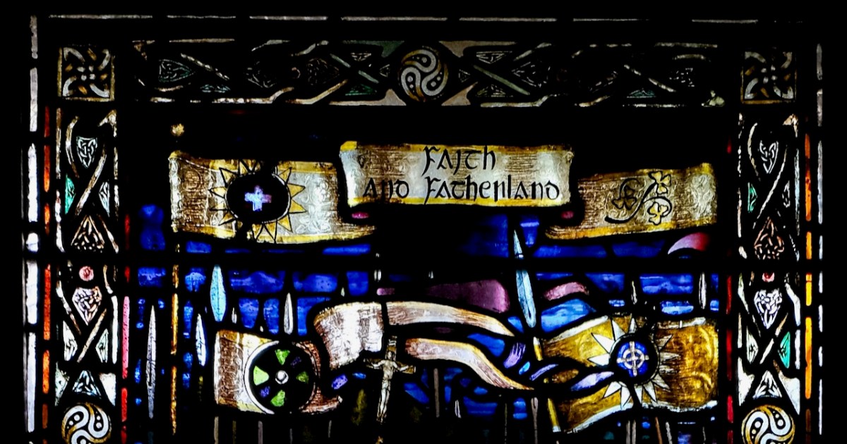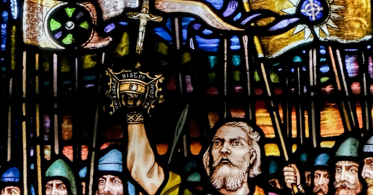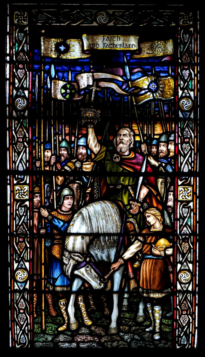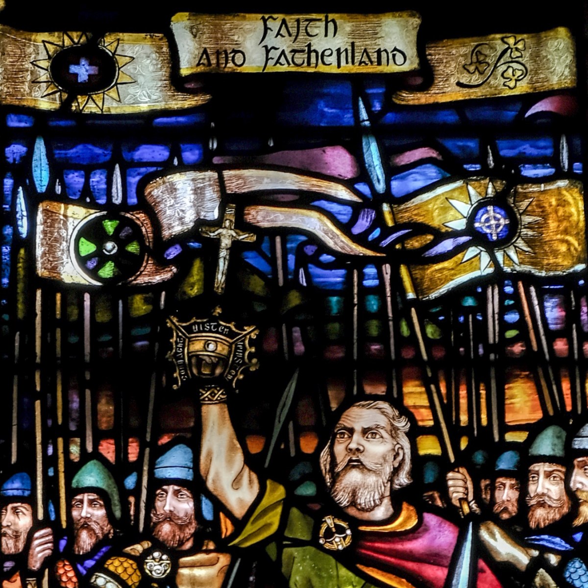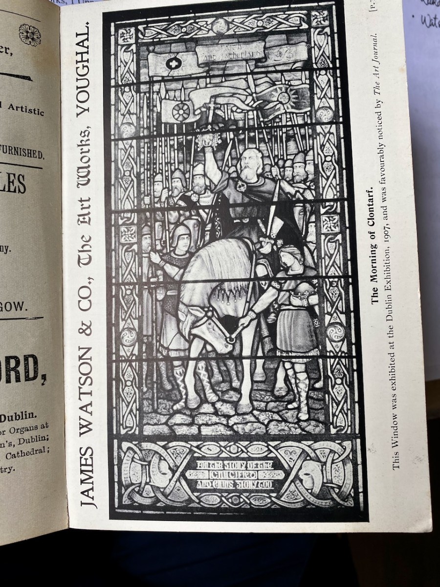This is the predella from the Brigid window in Moone, by the Harry Clarke Studios (see blow for the main panel)
