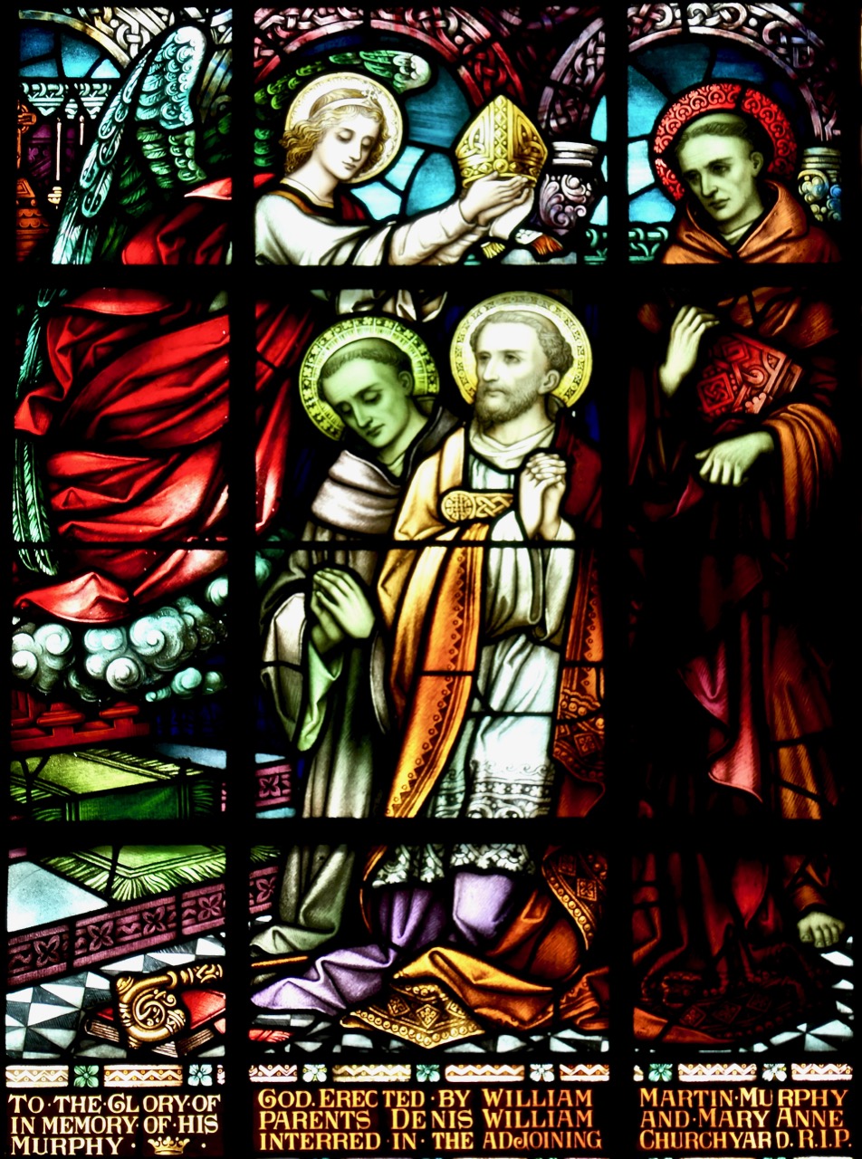 St Brigid, according to some accounts, died in 524. Therefore, we are celebrating this year the 1500th anniversary of her death. Once again, I have gone back to primary sources for incidents from her life and am illustrating them with stained glass images. This year I have added as a source the famous Canon O’Hanlon’s Life, from his Lives of the Irish Saints Series, Vol 2, a work of overwhelming erudition.