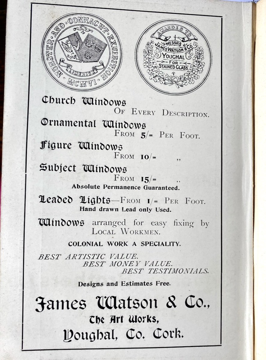 Harry Clarke’s 1924 window in Cloughjordan is of the Ascension with Irish Saints – this is a young St Brigid, holding her church