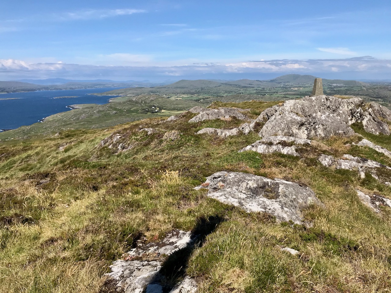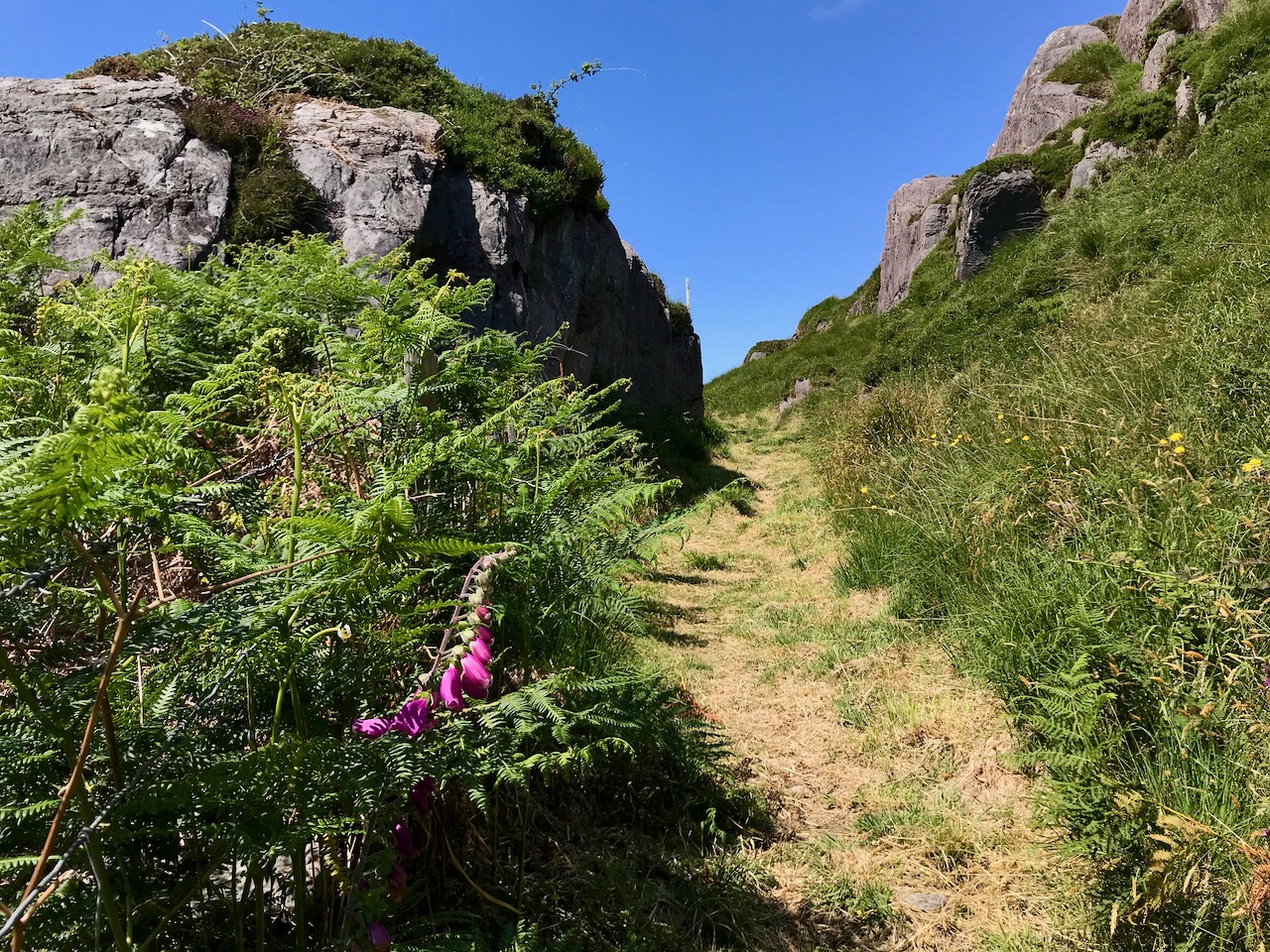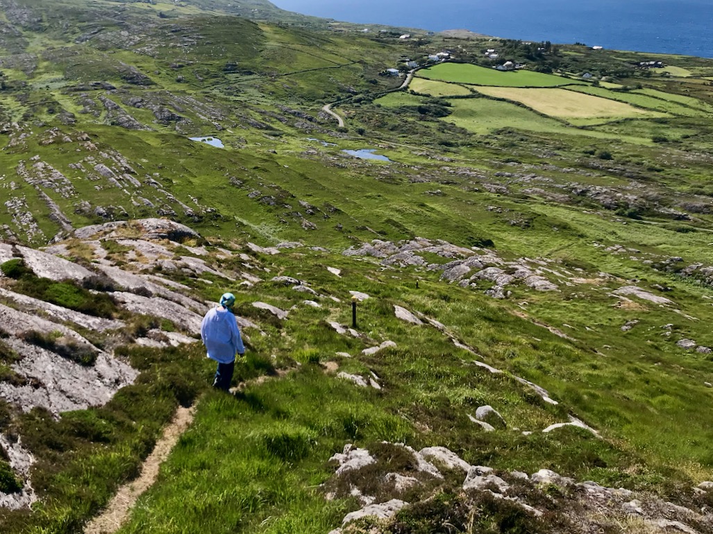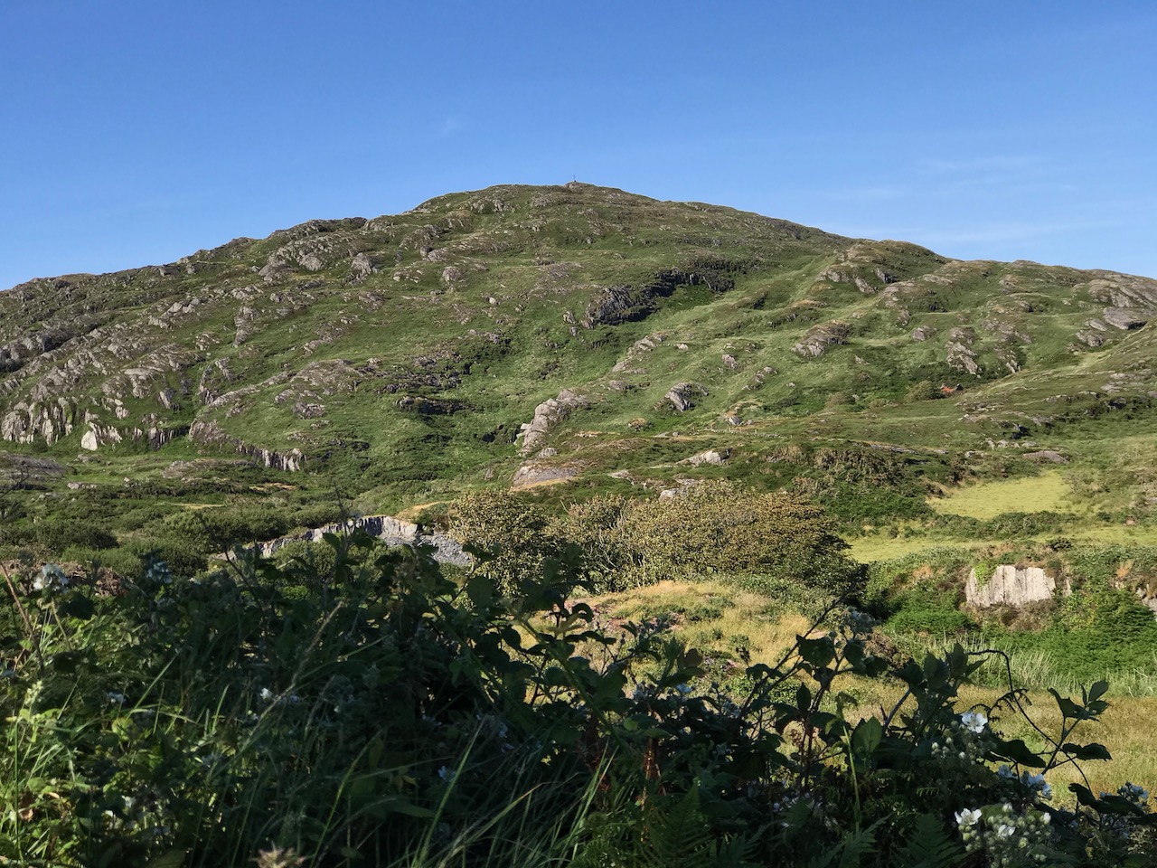 Perhaps one of the most satisfying mountains on the Mizen, the 237m high Knockaphuca provides a well maintained waymarked trail best tackled as it is laid out – in a counter clockwise direction. You will go up the east side and down the steep west face. If you are lucky with the weather, as we were just before the longest day, you will have an experience which is hard to rival in this corner of Ireland. The loop walk is one of the latest sections of the Fastnet Trails which have been established to the west of Schull during 2019. All credit is due to the team which has so successfully organised and laid out these trails: this has involved much behind-the-scenes hard work.