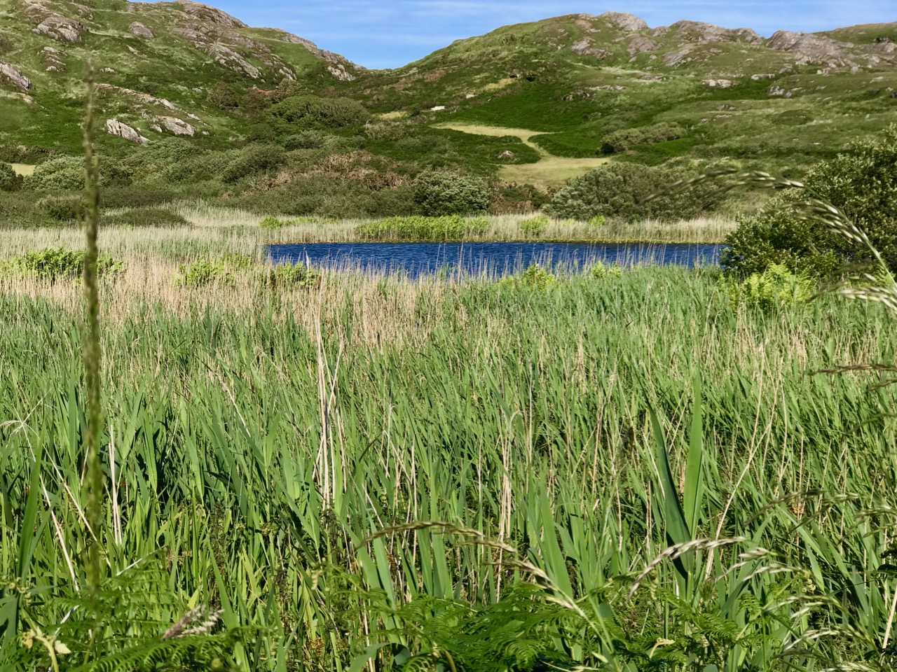 The path down descends quite steeply: make sure you are well shod and vigilant. But you are in for further treats: the marked way passes by some peaty mountain tarns which are exquisite in their pristine beauty. Finola was in her element finding undisturbed native species such as water-lilies and sundews.