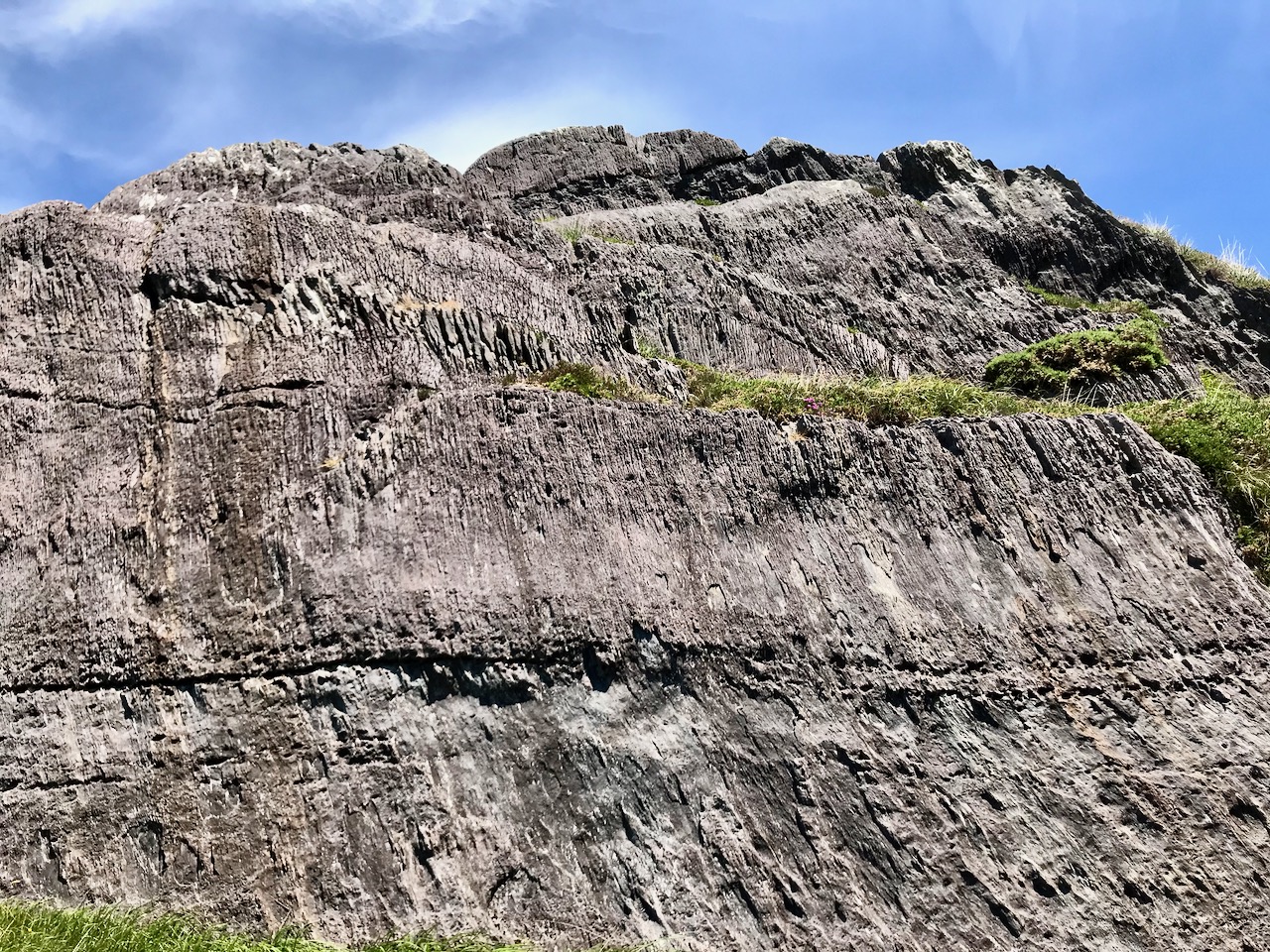 When you get to the top – pause… Now is the opportunity to appreciate the spectacular views in every direction. On our outing the south wind had been building up all day and was at its strongest in the late afternoon, when we gained the summit. It was pretty hard to remain upright! In fact, I wondered if we were being given a message by the resident Púca whose domain this is, after all?