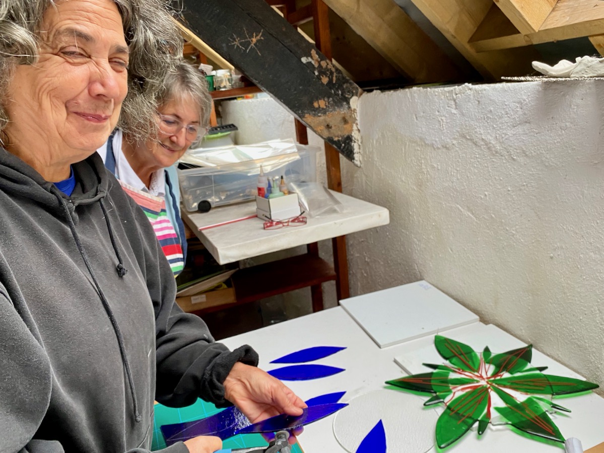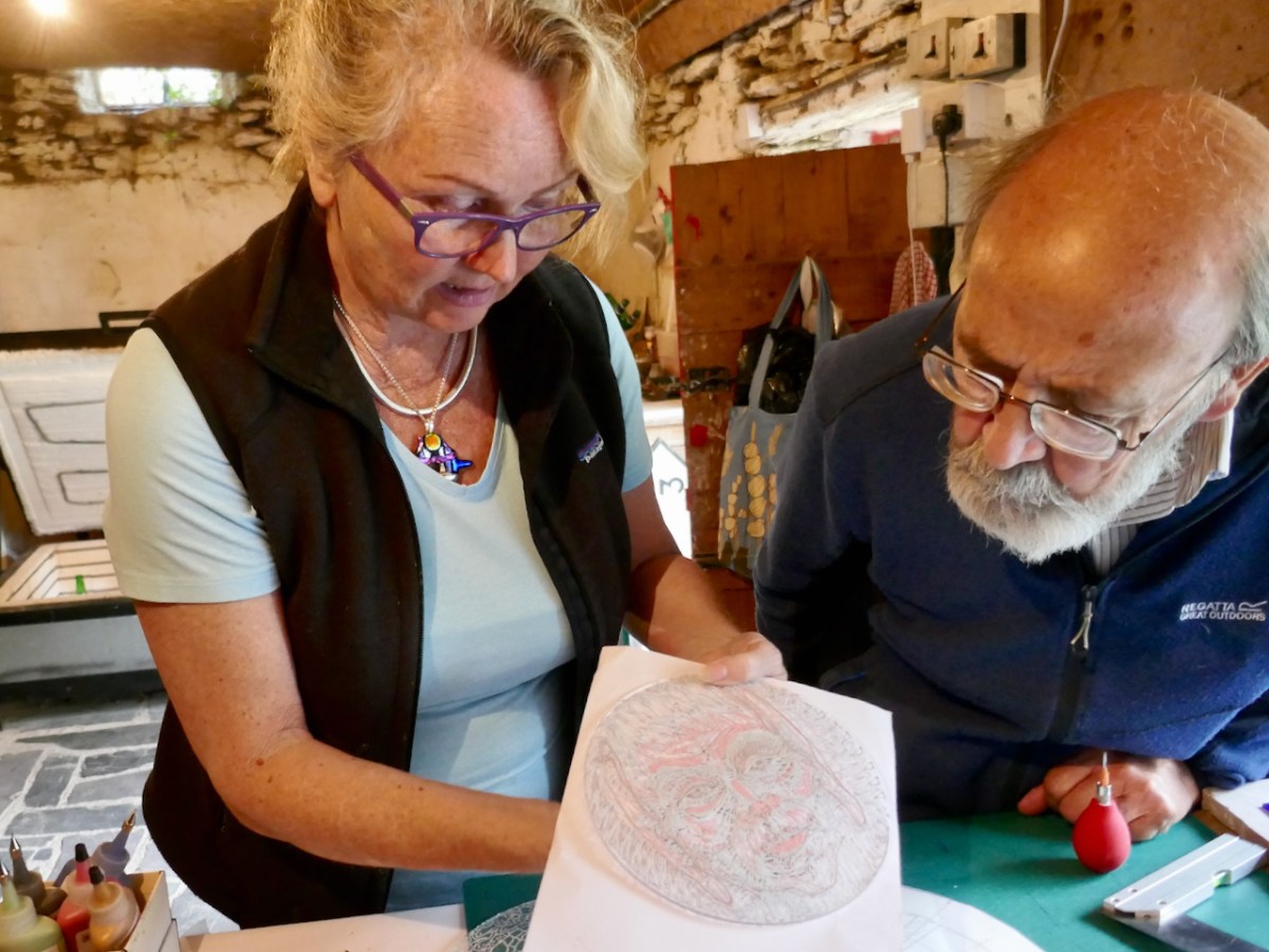 We had a great afternoon yesterday, exploring aspects of the history of Timoleague, in West Cork. Our Finola Finlay (above) was involved in an event organised by the Glass Society of Ireland . . . a professional all-island, non-profit association that opens a window onto the contemporary Irish Glass Community . . . The day’s proceedings were centred around the ecclesiastical buildings in the town, the earliest of which is the Franciscan Friary, now a substantial ruin beside the Argideen River.