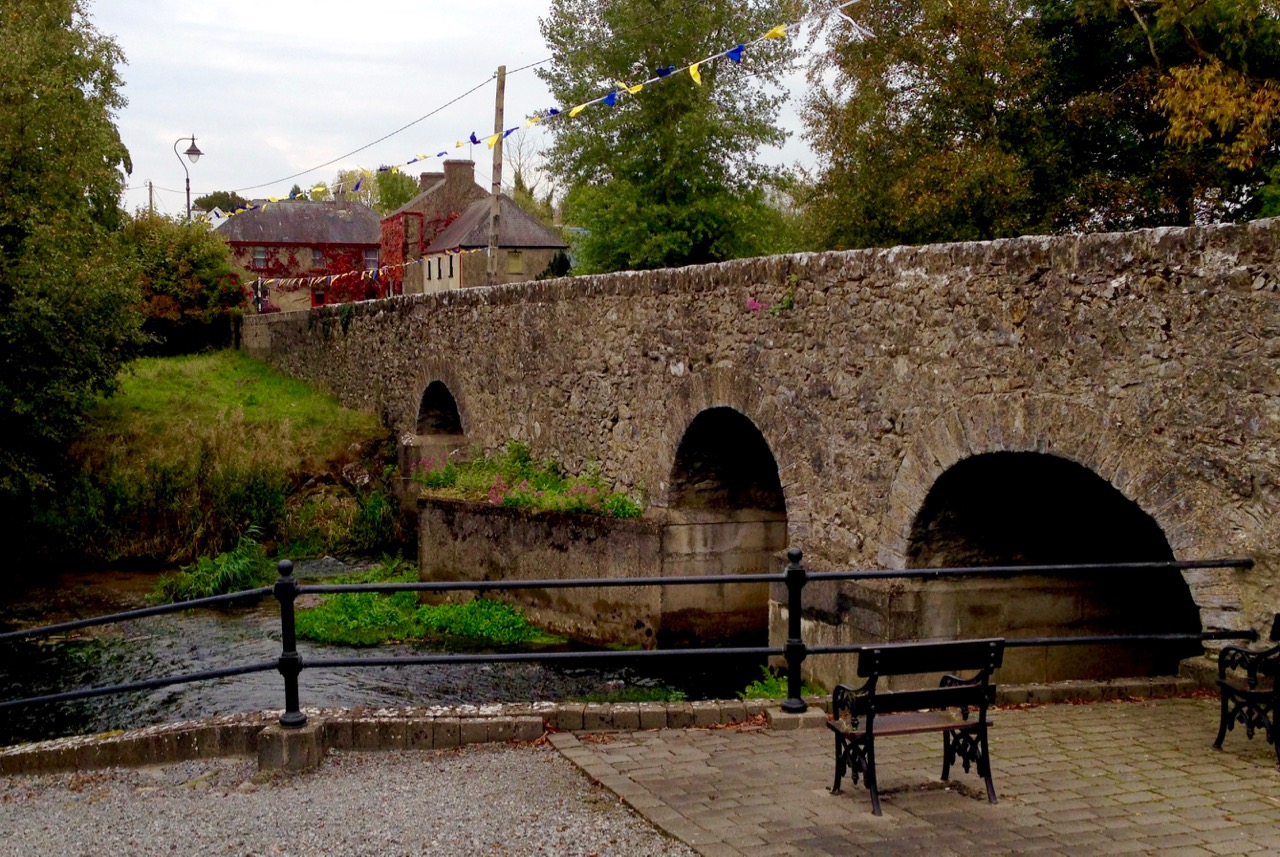 At one time (some histories say as early as the Bronze Age) this river crossing just below Lough Ree would have been a wide ford – Luan’s Ford. In the 11th century, Tairrdelbach Ua Conchobar, King of Connacht, had built a wooden bridge which survived, with various restorations, until 1566, when the first stone bridge was constructed (depicted above in a print now in the Aidan Heavey Public Library, Athlone). It could well be this medieval bridge that is commemorated in the ceilidh dance The Bridge of Athlone. The present bridge was opened in 1844.