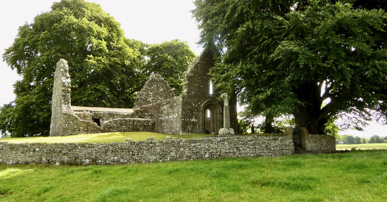 . . . We don’t know where he belongs. Some say he belongs to Killaloe. He had his monastery in Kyle. Near the monastery he had a big stone where he used to pray. There are two big holes where he laid his elbows, and two more where the tears fell. In Ballaghmore there is a trough laid up on a stone. It is always half-full of St Molua’s water. The hottest day in the summer the well is always half-full of water. When he died the people of Killaloe wanted to bury him in Killaloe and the people of Kyle wanted to bury him in Kyle. They made two coffins, one went to Kyle and the other to Killaloe. He had another monastery in Offaly . . .