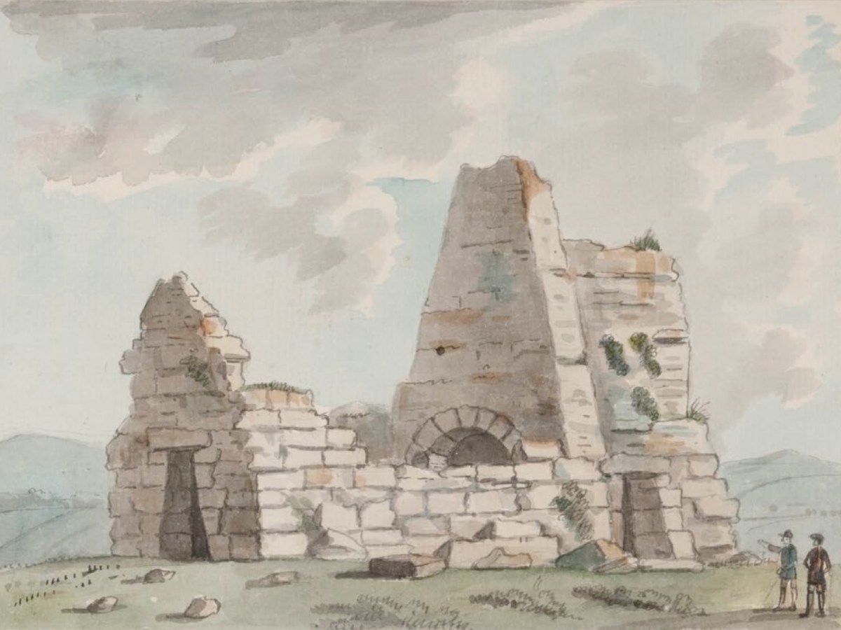 St Lua’s Oratory – Eighteenth Century water colour – Royal Irish Academy. The figures are somewhat out of scale. Below is a photograph of the Romanesque structure taken on the island in the 1920s.