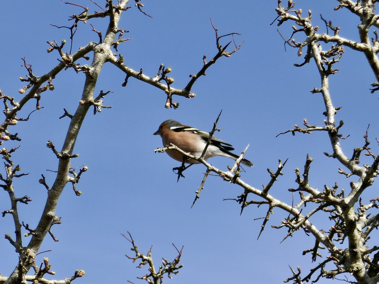 Of course, the May Bush is a thorn – a spiky tree, seen here before the blossoms come out. Even if those pisogues about it being unlucky to bring it into the house didn’t protect it from being cut, then those thorns would certainly be a goodly deterrent. This great picture, with chaffinch, was taken by Finola, who also provided many of the other photos here. Thank you, Finola! We admire the work of Michael Fortune, who lives in Wexford where, with Aileen Lambert, they have succeeded in re-establishing a May Bush tradition.