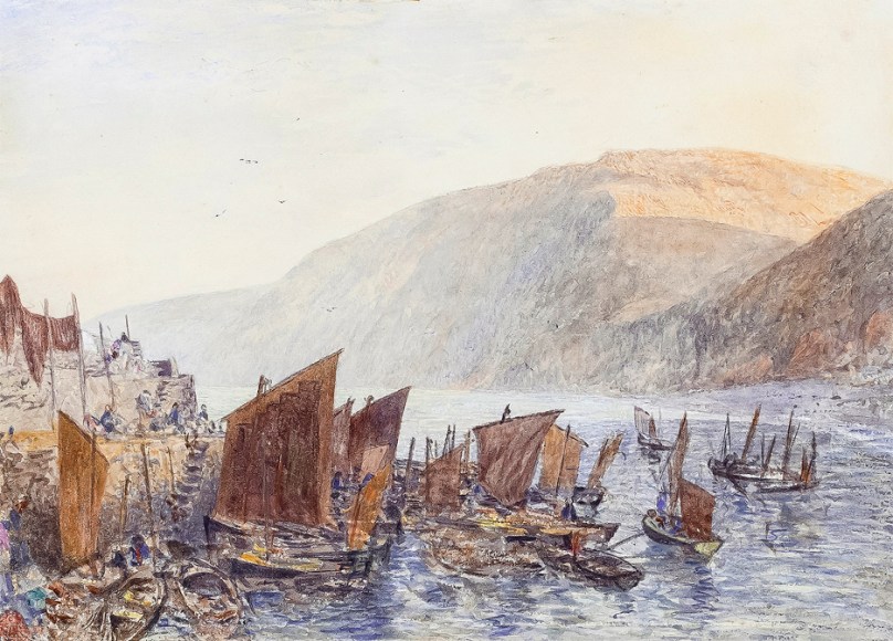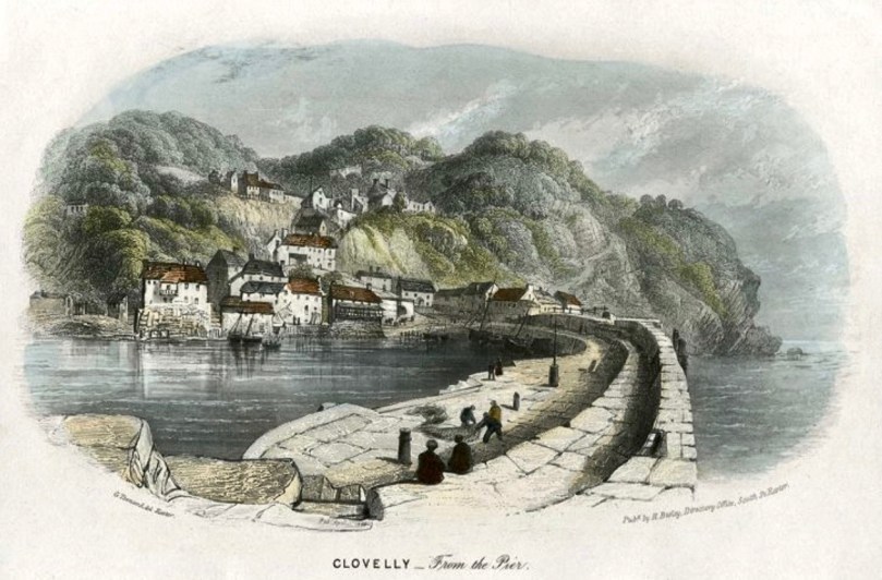 Old Clovelly – romantic views from Alfred William Hunt (upper) and an engraving (lower), both mid nineteenth century