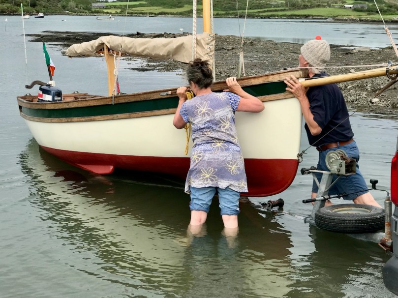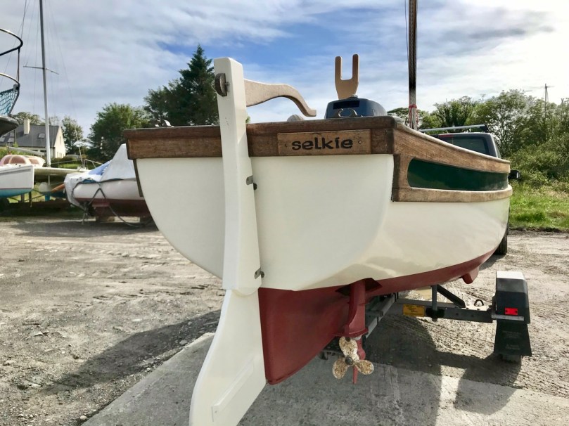 Selkie belongs to our friends and neighbours, Oliver and Susie Nares. It has a mooring at Audley Cove – just over the hill from us. It has been out of the water during the winter receiving some refurbishment and a new colour scheme (it’s shown above in last year’s livery). I was pleased to get an invitation to the launch this week, down at Rossbrin Cove.