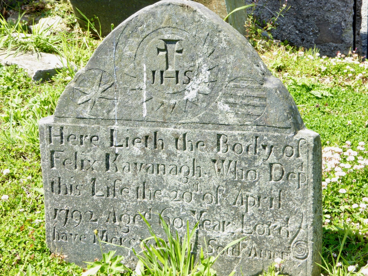 On this website, take a look, for example at Grave 31 from the Abbey Graveyard – photographed, numbered, geo-located on the map. It’s the headstone of Cornelius Leary Senior, who died in 1797 aged 88. The script is beautifully incised – the work of a master carver. Such a headstone is a real treasure, both for the information it contains and as evidence of the craftsmanship that went into a memorial like this for those who could afford it.