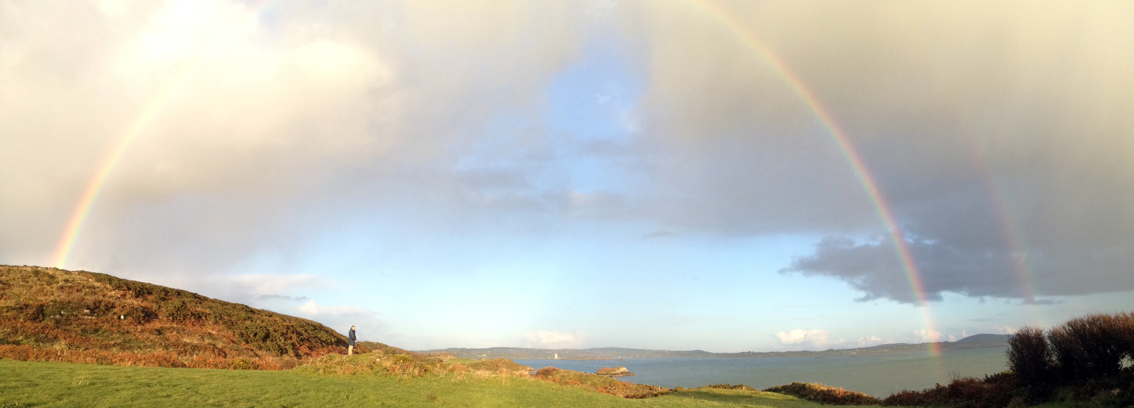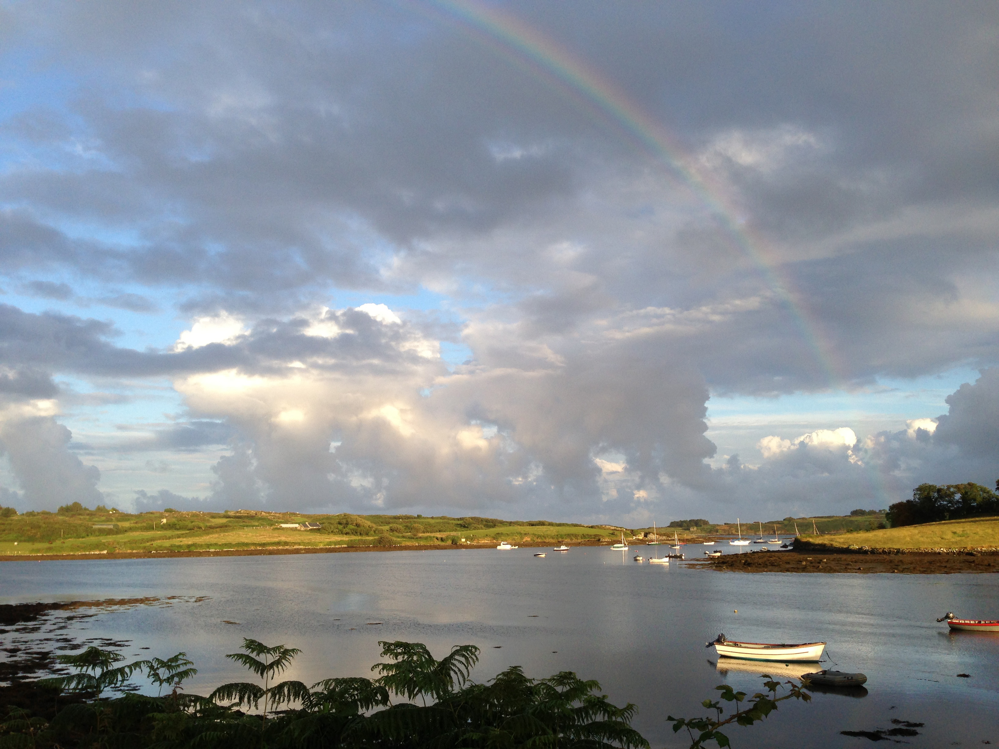 Mines; standing stones; Fairy Forts; medieval castles and manuscripts; holy wells; mussel farming; lobsters, shrimps et al… We are surrounded by evidence of human endeavour going back thousands of years. Through it all the natural world continues regardless: the sun rises, the moon wanes, storms blow in, seasons turn; the tides bring daily changes to the shoreline – and the rainbows are our evanescent doorstep miracles…