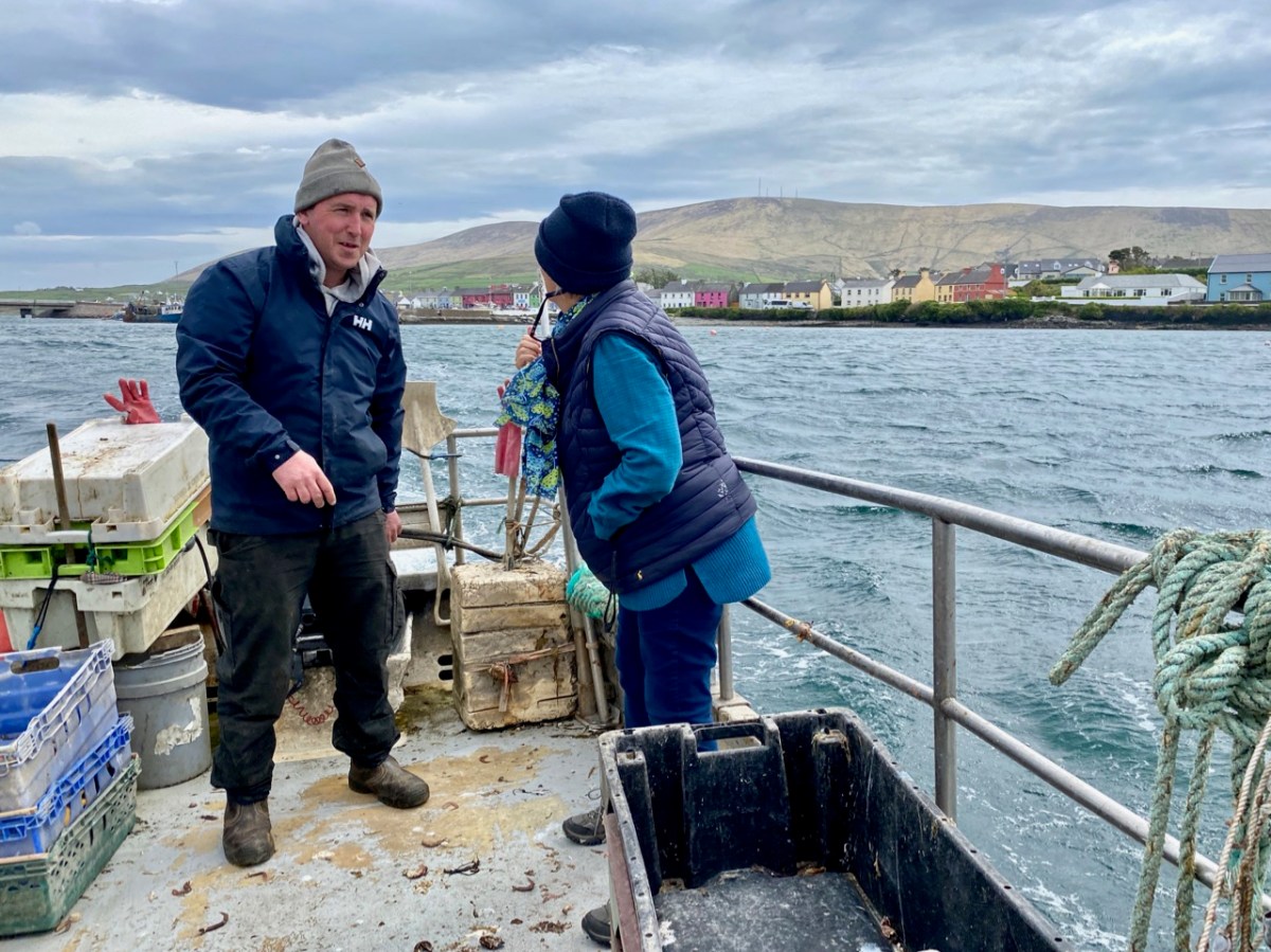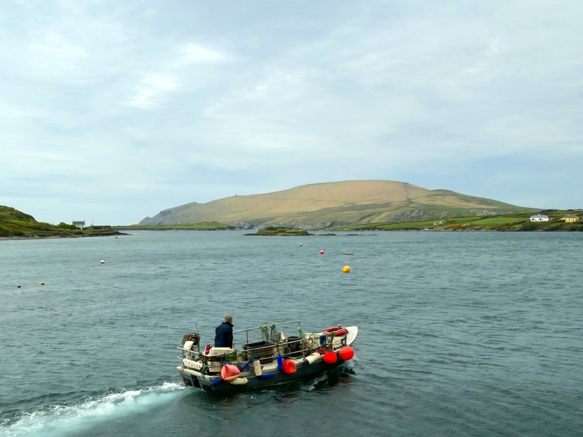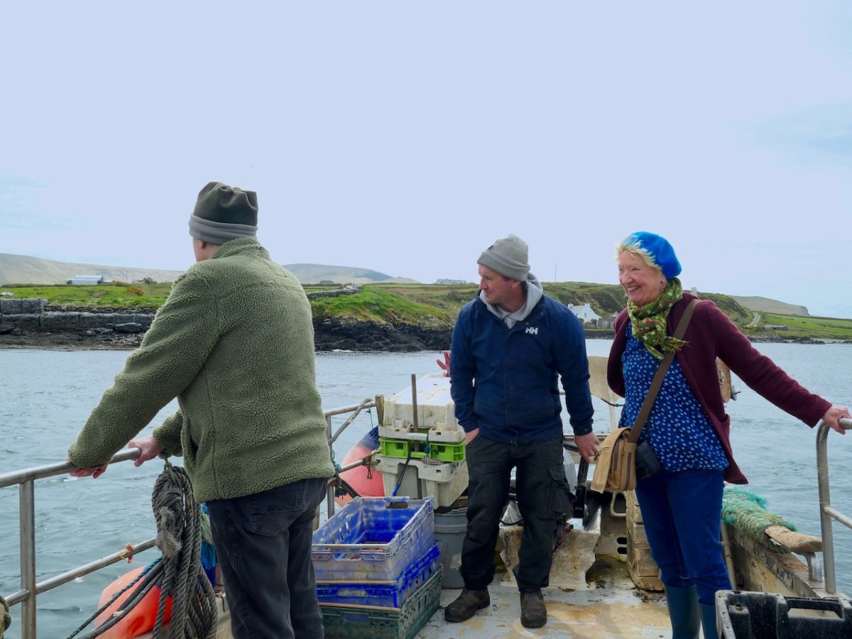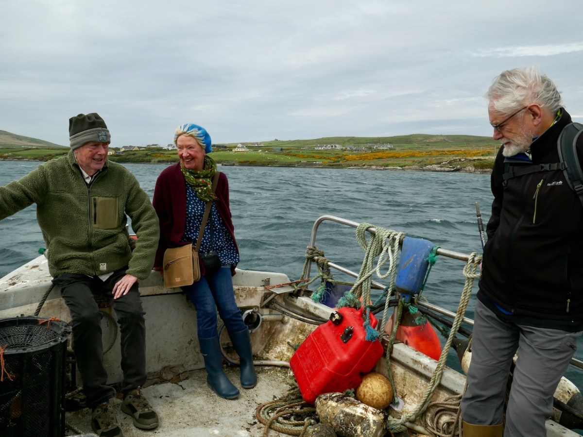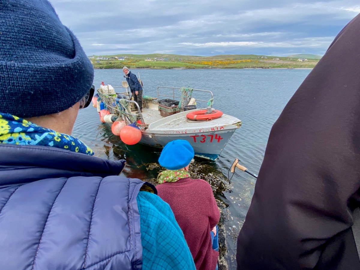 Our sea journey was on board an aluminium fishing boat – there it is, below, with the island of Illaunloughan in the background.