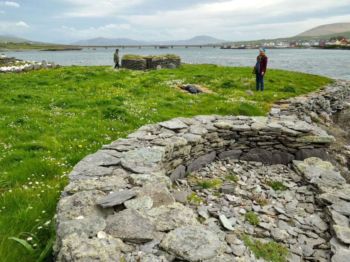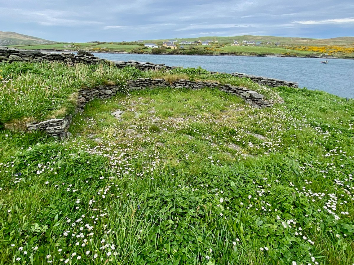 This is the view of the island as the boat approaches it: you can see various of the archaeological features. It doesn’t take long to explore – but it’s fascinating. A full survey of the surviving monuments was undertaken by Jenny White-Marshall and Claire Walsh in the 1990s: this resulted in the publication Illaunloughan Island: An Early Medieval Monastery in County Kerry, Wordwell Press, 2005. Here is a synopsis: