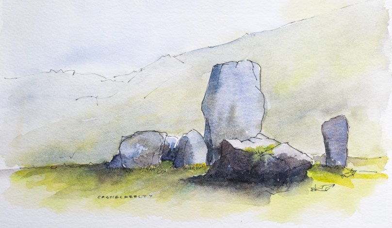 A stone row to round out the archaeology sites – this one is at Maughnasilly and I chose it because it’s been excavated, so there’s an informative sign, access is easy and it’s a beautiful, atmospheric site, overlooking a small lake. The row has been calculated to have both lunar and solar alignments.