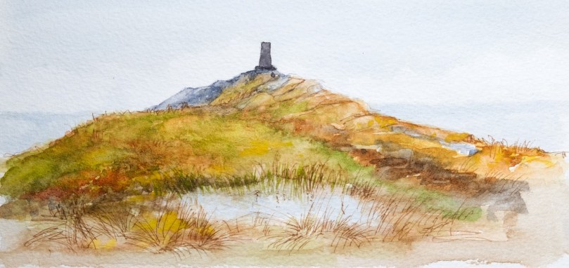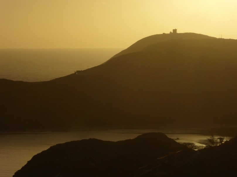 Brow Head showing the signal station and Marconi station silhouetted against the evening sky