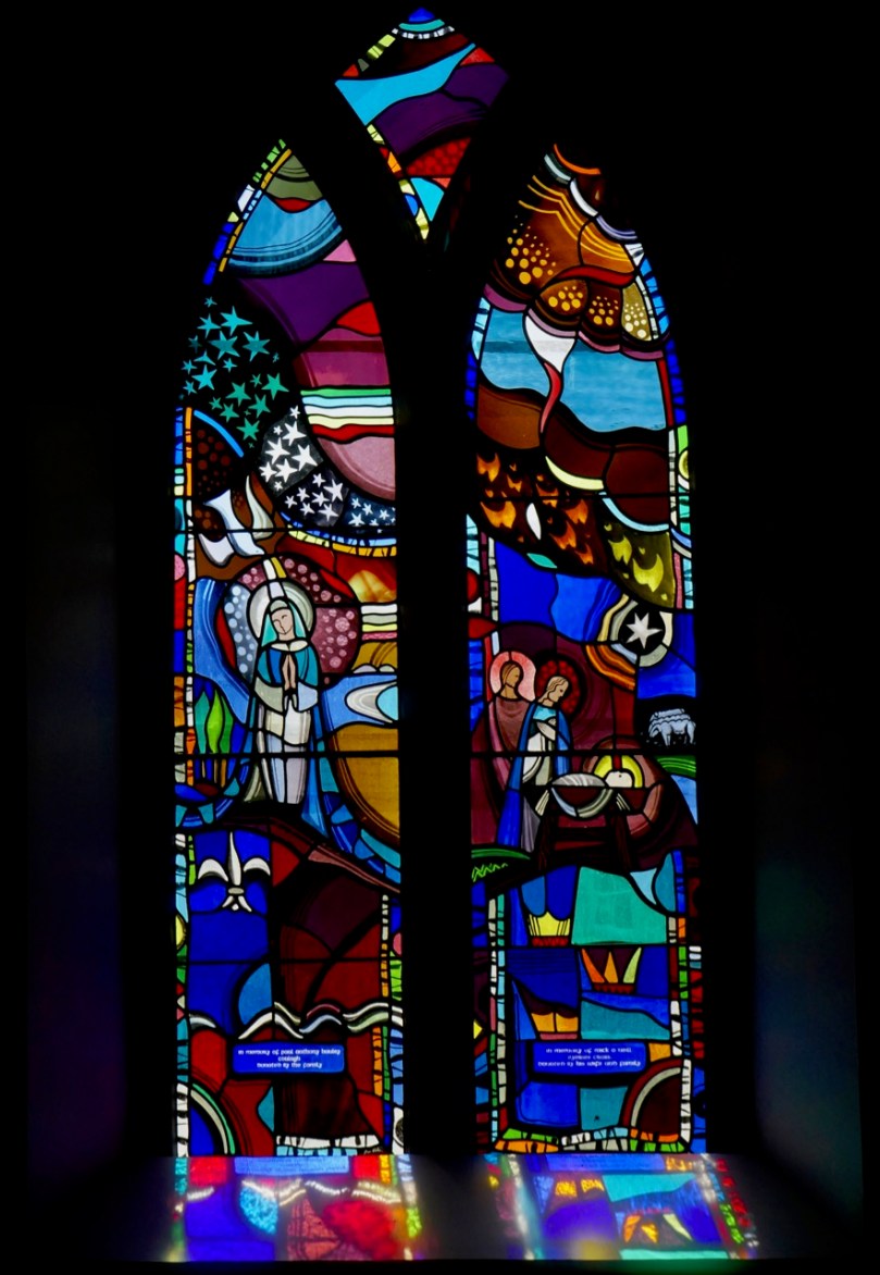 The interior of the church, and one of the beautiful Clayton and Bell windows