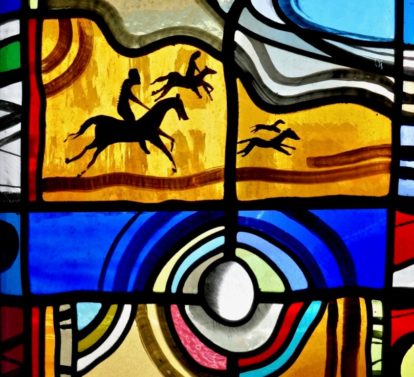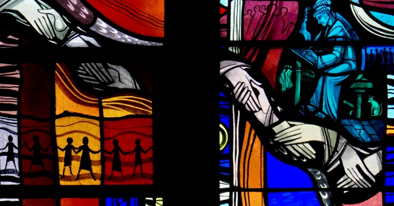 I leave you with a detail from the George Walsh windows in Eyeries, together with the poem the scene is based on, Pangur Bán, written in the 9th century by an Irish monk labouring away in a scriptorium in Europe. Here is the poem read, at a memorial service for Seamus Heaney, first in the original Old Irish and then in Heaney’s translation.