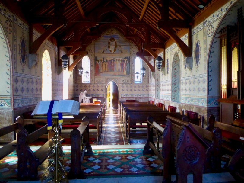 And a final church, but this one strictly for the windows. (No – not St Barrahanes in Castletownsend for the Harry Clarkes – everyone knows about them already, and this is a selection of lesser-known wonders.) Do NOT go through Eyeries, on the Beara Peninsula, without stepping into the little church of St Kentigern. Here is where we were first introduced to the work of the stained glass artist, George Walsh.
