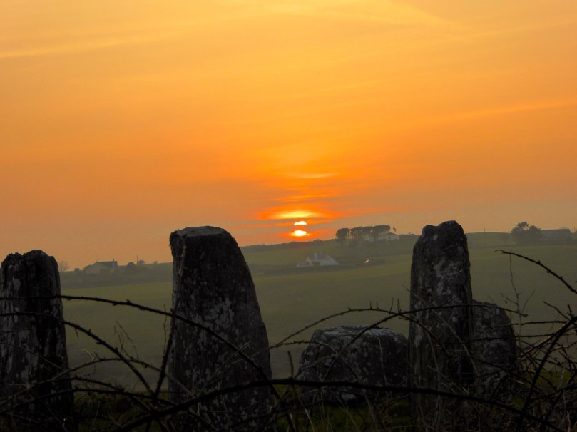 We were lucky to have a session there one equinox, and another one with Ken Williams of Shadows and Stone. For access, park just off the main road, across from the salmon coloured house 4.5km east of Rosscarbery and walk up the farm road to the barns and from there to the top of the hill. This is a working farm – please close all gates and be respectful of animals!